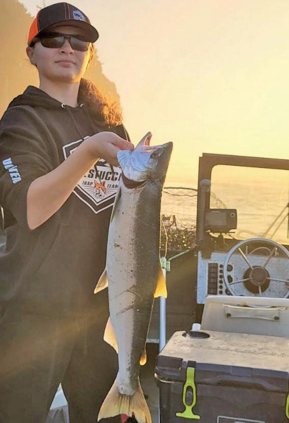 Her family’s connection to the sea runs deep. Both of Evie’s great-greatgrandfathers, from the Kellow and Schulmerich families, were skilled wooden boat builders who launched their vessels from Cape Kiwanda and fished the Nestucca River. According to family history, her great-great-uncle, Howard Kellow, designed and built the first square-ended dory ever launched from the beach — revolutionizing the traditional double-ended design.