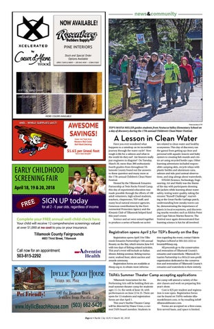 TAPA’s Summer Theater Camp accepting applications Tillamook Association for the Performing Arts will be holding their annual summer theater camp for students ages 11-14, the week of June 18, with performances on June 22 & 23. There are spots for 13 students and registration forms are due April 1. This year’s Starlite Theater Camp will be directed by Diane Cross, a current TAPA board member. Students in Page 6 • Pacific City SUN • March 30, 2018