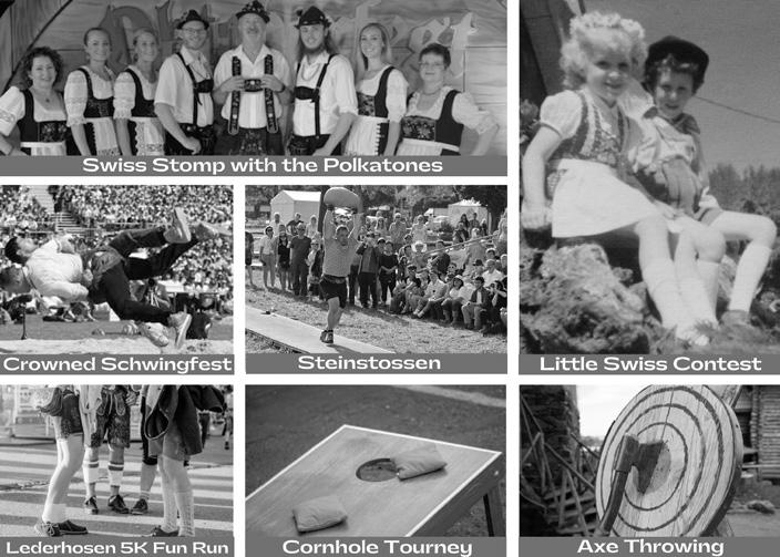The day will be capped of at 7 p.m. with the “tapping of the festival keg” followed by a joyful party named after a popular line dance called the Swiss Stomp. Music for the stomp will be provided by the very popular Polkatones—an eight-member traditionalcostume band, sure to add plenty of oompah and two-quarter-time polka fun to the festivities.