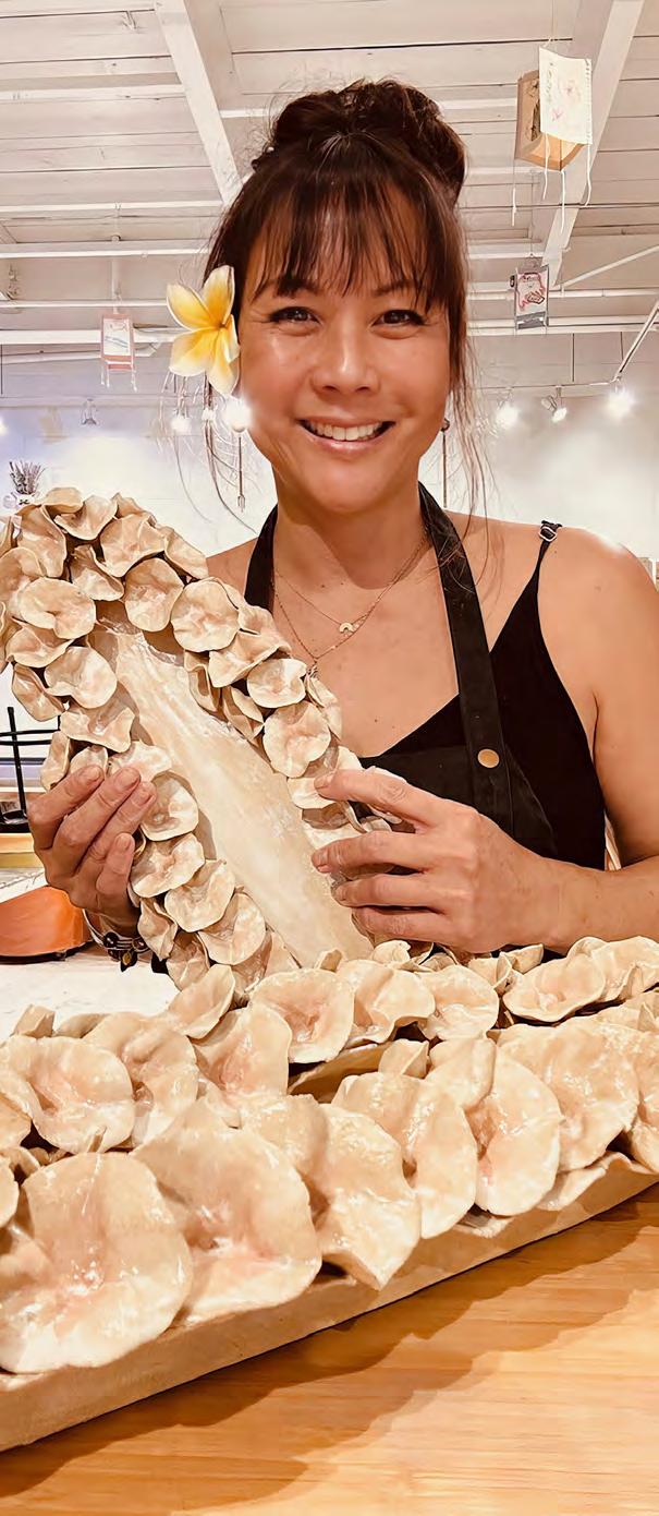 One of Remle’s first pieces was selected for the 2023 Raku Ho‘olaule‘a Exhibition, and currently she has another piece in the 2024 Raku Ho‘olaule‘a show at Mark’s Garage. Remle’s hanging lei and other art can be enjoyed at Arden Waikiki Restaurant in the Lotus Honolulu Hotel at Diamond Head.