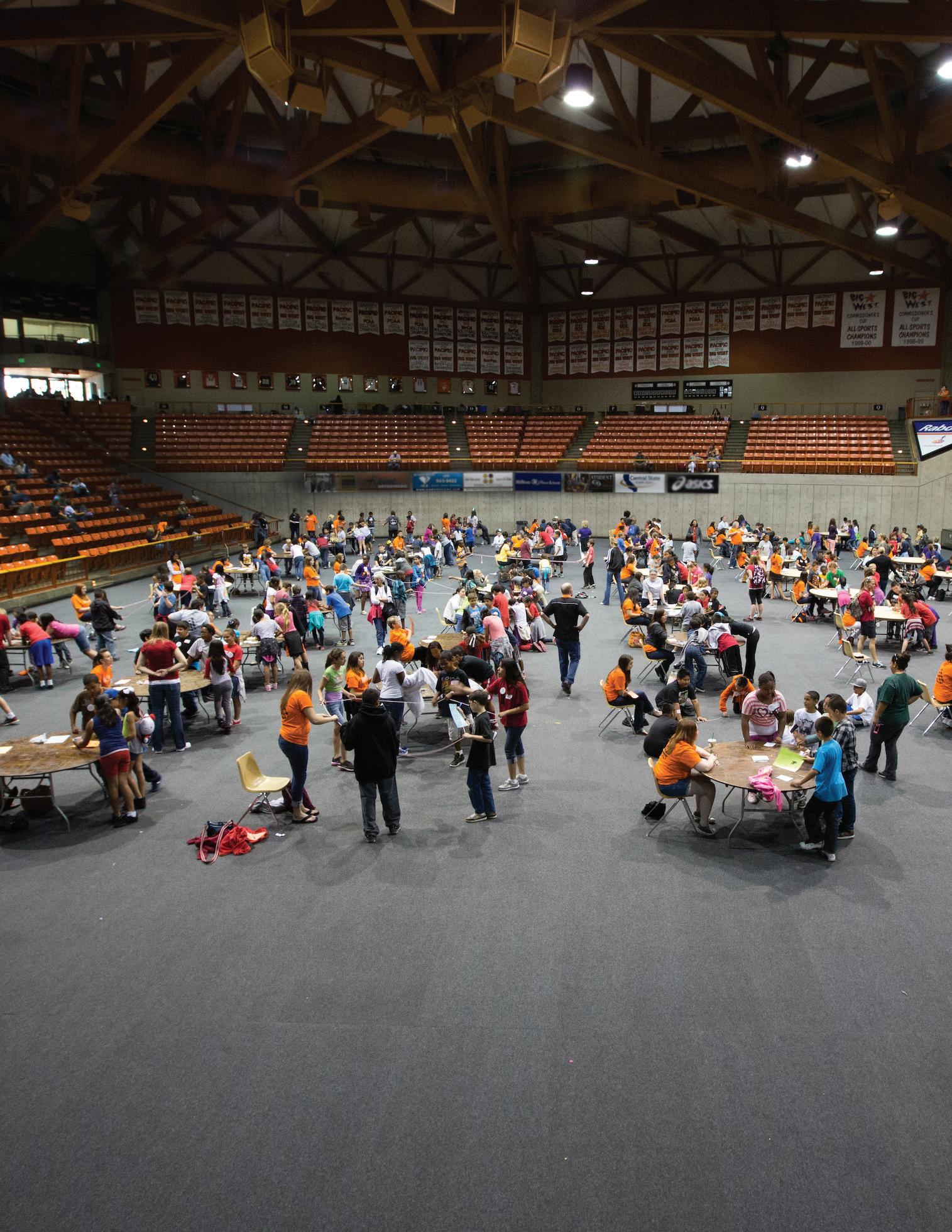 Now in its 15th year, the Math Steeplechase is hosted annually by Benerd College with support from Pacific’s Athletics and Physics departments. Each year, the event serves more than 800 fifth-grade students who participate in a mathematical competition, physics experiments, a campus scavenger hunt and athletic activities. The main math competition involves teams of students working collaboratively to quickly solve complex math problems in a matter of minutes.