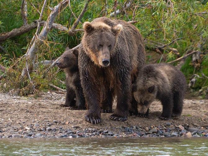 Our raft bobs down the Atnarko River in British Columbia’s lush Great Bear Rainforest, one of Earth’s largest remaining temperate rain forests. As we round a rocky strand of riverbank, a young grizzly bear and her two cubs emerge from the canary grass. They march single file alongside us—a little too close for comfort. Years of backcountry hiking—and established safety