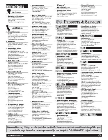 Breeders Directory Listings are also posted on the Pacific Showcase website at no additional charge! Get your name in the magazine and on the web year-round for one low price! Call 408-888-2503 to find out how. september/october 2013