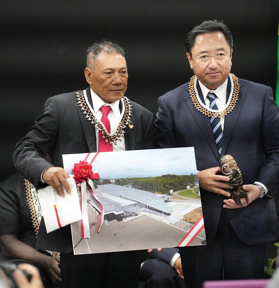 Below: Minister of Communication and Aviation Hon. Peter Shanel and an official from the Japanese Embassy in Honiara.