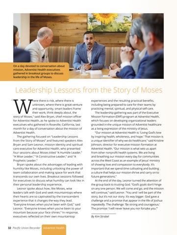 Regs: The Pacific Union Recorder (ISSN 0744-6381), Volume 123, Number 4, is the official journal of the Pacific Union Conference of Seventh-day Adventists and is published monthly. Editorial office is at 2686 Townsgate Rd., Westlake Village, CA 91361: 805-497-9457. Periodical postage paid at Thousand Oaks, CA, and additional mailing offices. Subscription rate: