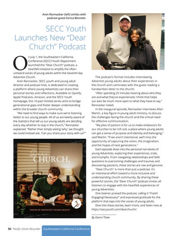 Postal Regs: The Pacific Union Recorder (ISSN 0744-6381), Volume 124, Number 9, is the official journal of the Pacific Union Conference of Seventh-day Adventists and is published monthly. Editorial office is at 2686 Townsgate Rd., Westlake Village, CA 91361: 805-497-9457. Periodical postage paid at Thousand Oaks, CA, and additional mailing offices. Subscription rate: No charge to Pacific Union Adventist church members; $16 per year in U.S.; $20 foreign (U.S. funds); single copy, $2. POSTMASTER : Send address changes to: Circulation Department, Pacific Union Recorder, Box 5005, Westlake Village, CA 91359. Info@adventistfaith.com.