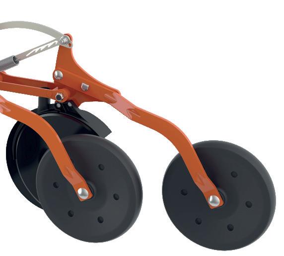 Voor een optimale ontkieming en gelijkmatige opkomst bevorderen de persen diepteregelingswielen een goed grond/ zaadcontact en vochtoverdracht naar het zaad door een capillaire werking. De zaaidiepte wordt rij voor rij geregeld.