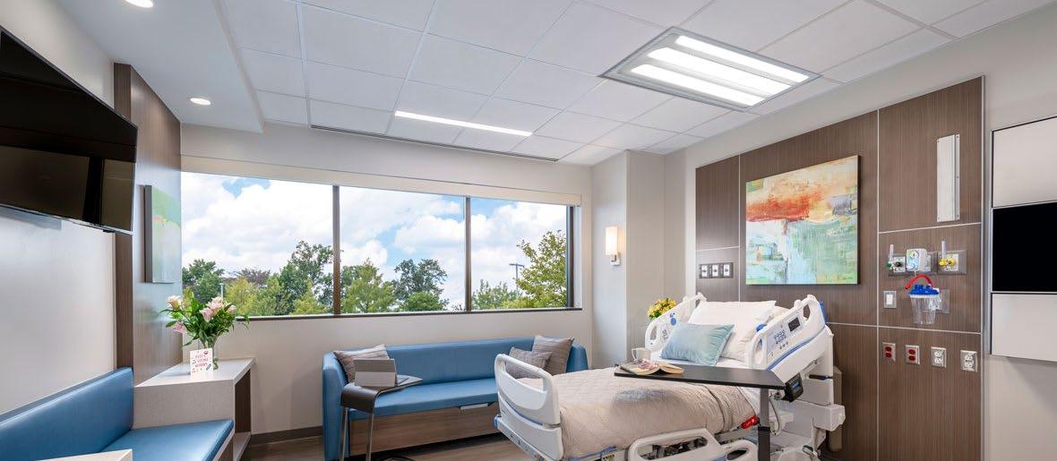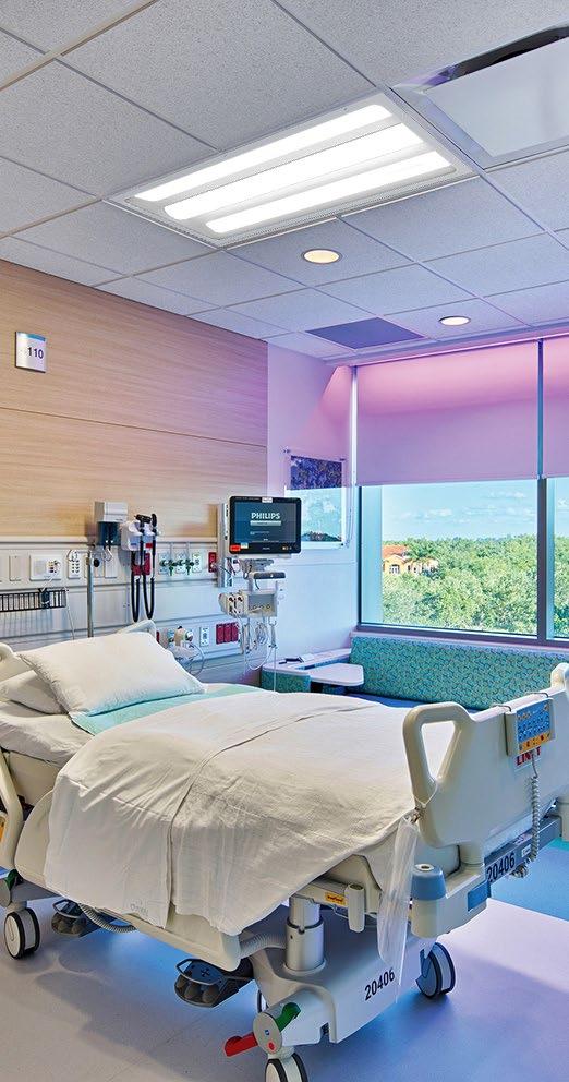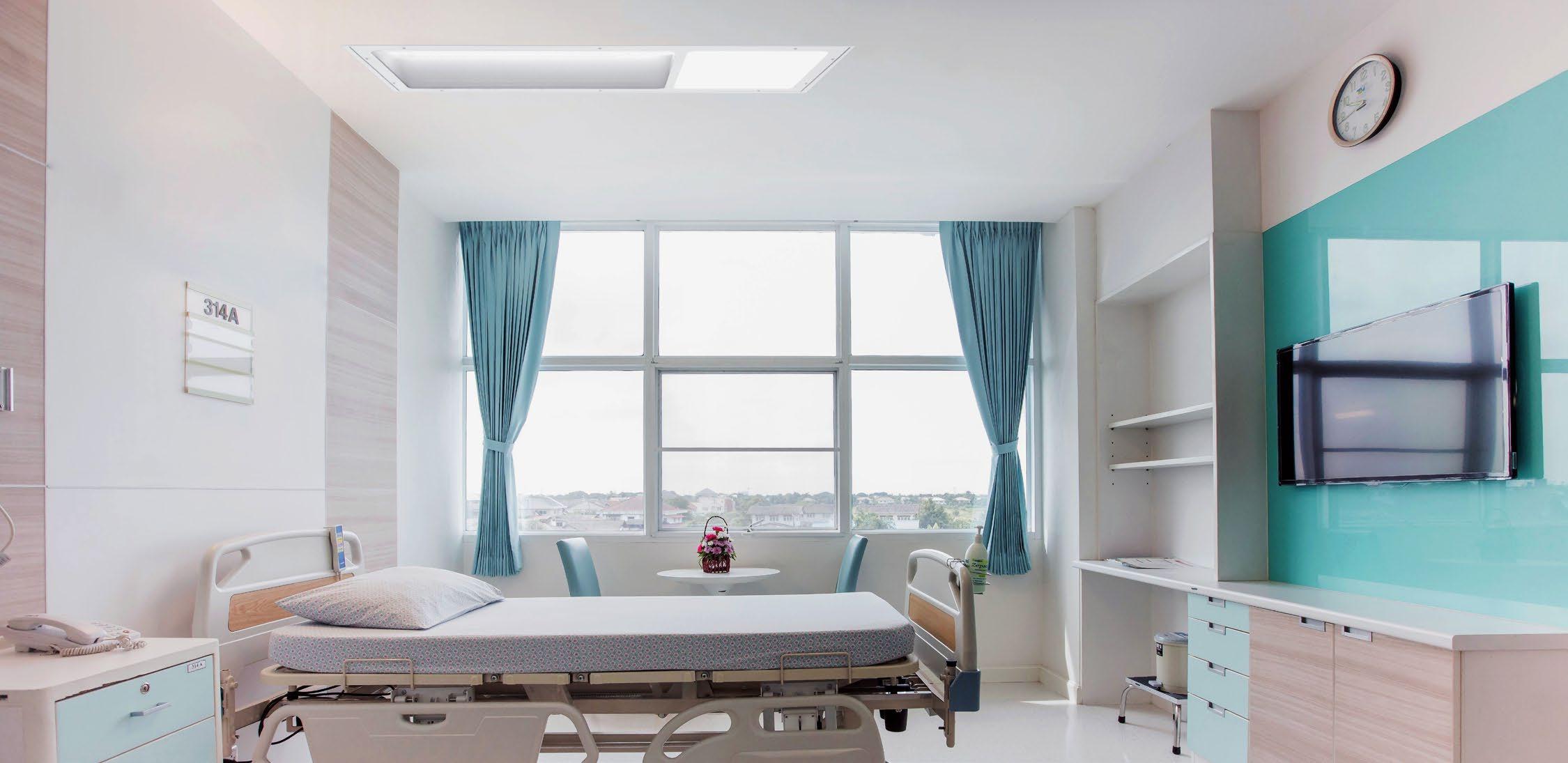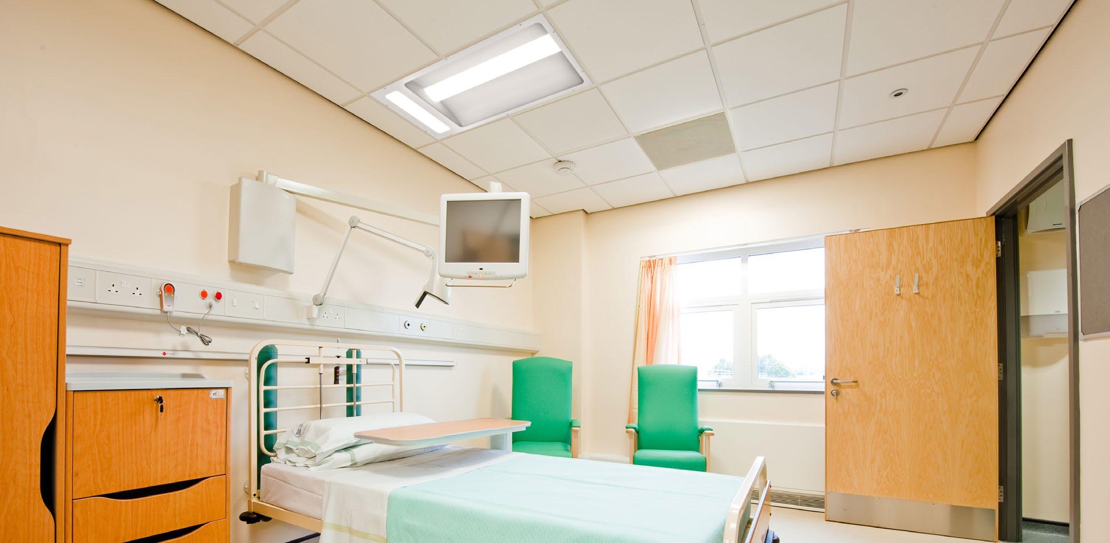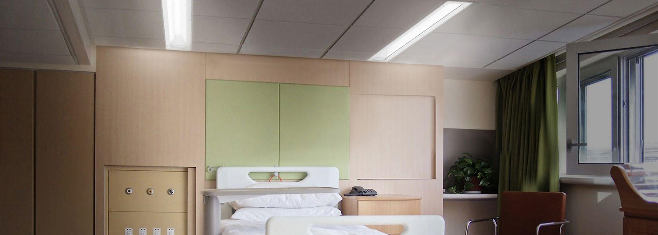Multi-functional luminaires (lighting for examination, ambient and reading) to provide lighting that meets medical staff requirements while maximizing patient comfort.