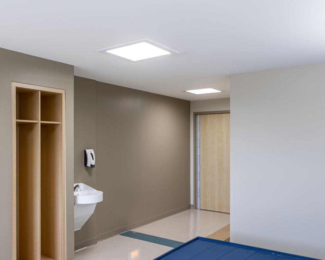 All our health care luminaires for general lighting and patient rooms are offered in both standard and tamper proof/anti-vandal versions. Heavier gauge steel and thicker polycarbonate security lens are the two main modifications that make our fixtures suitable for behavioral and psychiatric facilities.