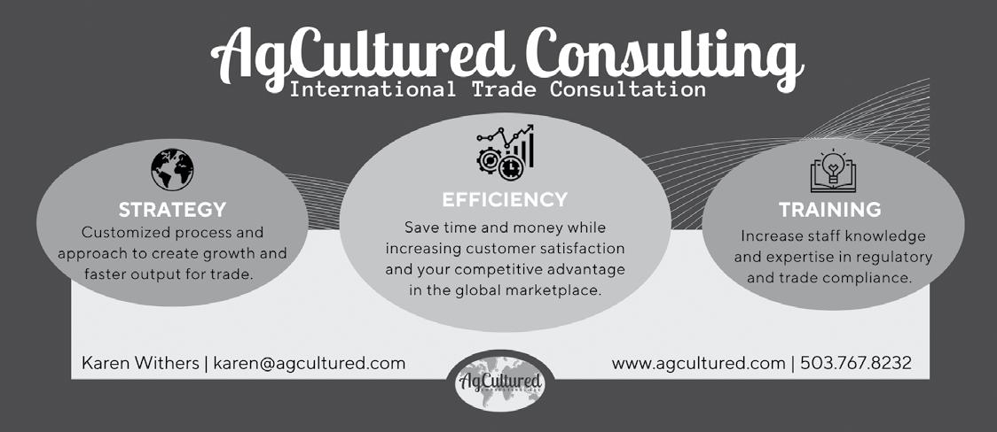 AgCultured Consulting ..................... 9 Ag Drainage Corp. 27 AgWest Farm Credit ......................... 5 American Ag Systems 25 AMVAC .............................................. 29 Axill Solutions 21 Barenbrug USA BC Citizens Bank ................................... 37 Creekside Valley Farms 44 FMC ................................................... 23 Ground and Water 40 Harvest Capital Company .............. 15 Hilton Trenching 30 Integrated Seed Growers LLC ....... 41 Liphatech, Inc. ................................. 35 Marion Ag Service 2 Neudorff .......................................... 13 Nutrien Ag Solutions, Inc. 10 ORCAL, Inc. ....................................... 17 Oregon Grass Seed Bargaining Association .................. 42 Oregon Seed Association 47 OSU Seed Services .......................... 45 Pratum Co-op 6-7 Sprague Pest Solutions .................. 31 Valley Agronomics LLC IBC West Coast Companies .................. 24 Wilbur-Ellis IFC, 32 CLASSIFIED ADS IN THE OREGON SEED MAGAZINE BRING RESULTS! Rates are $25 per 50 word insertion and 50¢ per additional word. Deadline for the Fall issue is August 16, 2023. Contact Shawn Anderson at (503) 364-3346, shawn@ostlund.com. Classifieds Calendar PLANT THE SEED AND WATCH IT GROW ADVERTISE WITH OREGON SEED MAGAZINE For more information contact Shawn Anderson at 503-364-3346 or shawn@ostlund.com May 17 Oregon Ryegrass Commission Meeting, 6 p.m., Cascade Grill 110 Opal St NE, Albany May 25 Oregon Tall Fescue Commission Meeting, 6 p.m., Roth’s, 1130 Wallace Rd. NW, Salem December 4-5 Oregon Seed League Annual Convention, Salem Convention Center, Salem Visit seedleague.org for more information Advertiser List
