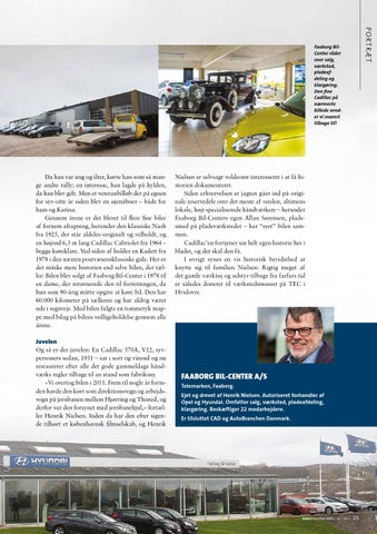 Nielsen er selvsagt voldsomt interesseret i at få historien dokumenteret. Siden erhvervelsen er jagten gået ind på originale reservedele over det meste af verden, altimens lokale, højt specialiserede håndværkere – herunder Faaborg Bil-Centers egen Allan Sørensen, plade smed på pladeværkstedet – har “syet” bilen sammen. Cadillac’en fortjener sin helt egen historie her i bladet, og det skal den få. I øvrigt synes en vis historisk bevidsthed at knytte sig til familien Nielsen: Rigtig meget af det gamle værktøj og udstyr tilbage fra farfars tid er således doneret til værkstedsmuseet på TEC i Hvidovre.