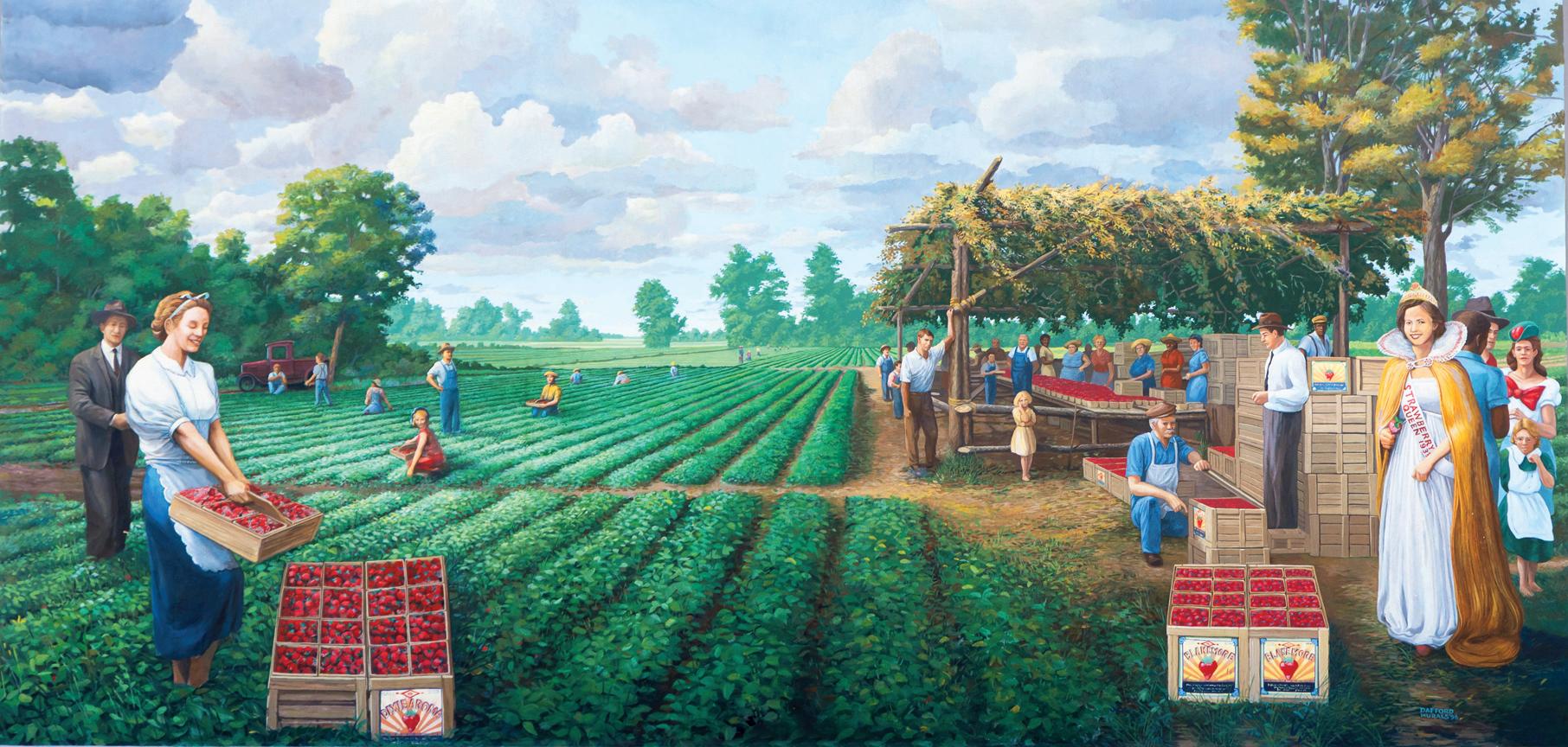 is one of the riverfront murals so brilliantly depicted by muralist Robert Dafford. It is one of the most colorful of the current murals and depicts a time in Paducah’s history when this agricultural endeavor reigned supreme in farm fields across the area. An article from a 1956 Paducah Sun Democrat newspaper article provides a flavor of what the strawberry festival meant to the citizens of that era. It read in part…