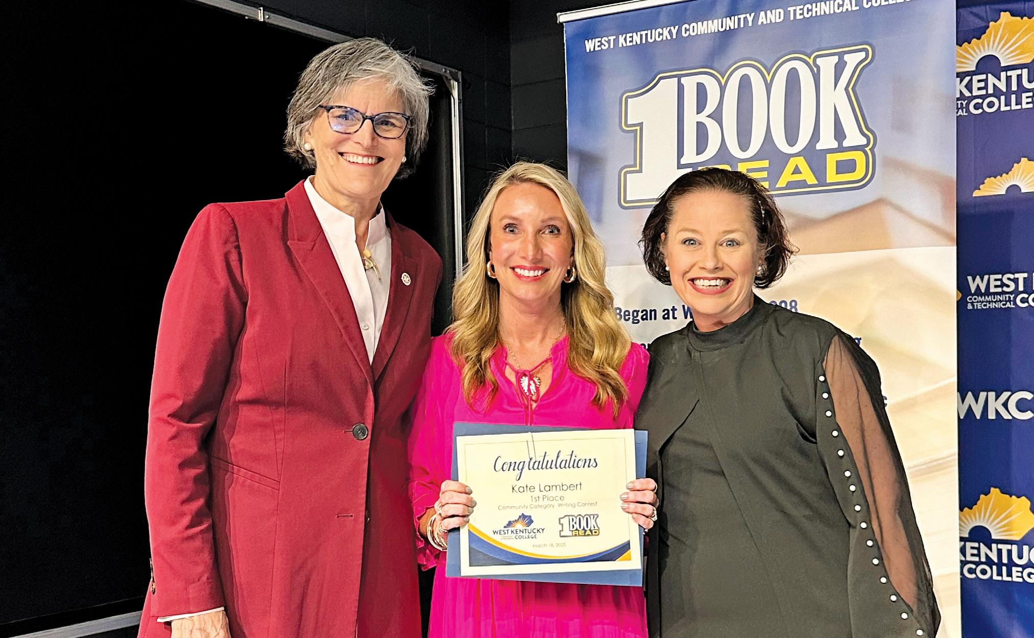 Kate r raade l ddle Schoo eighth-gr teache T winning essa Kentuck T visit o T year’ featured novelF ulliv n were communitymembers d ff in l Pe A whose book, McClure was in he competition Th College. l contest d R e 2025 One Book