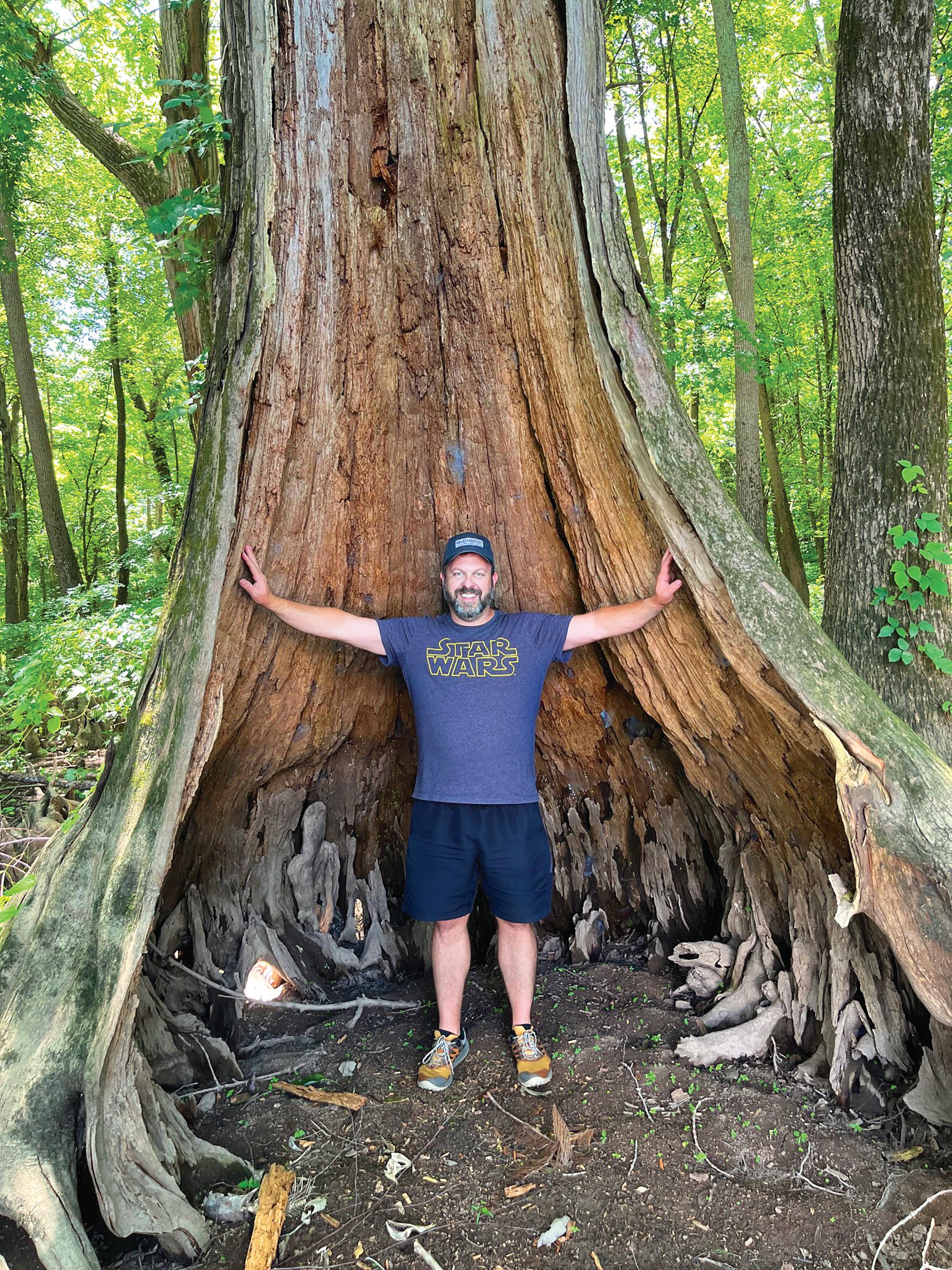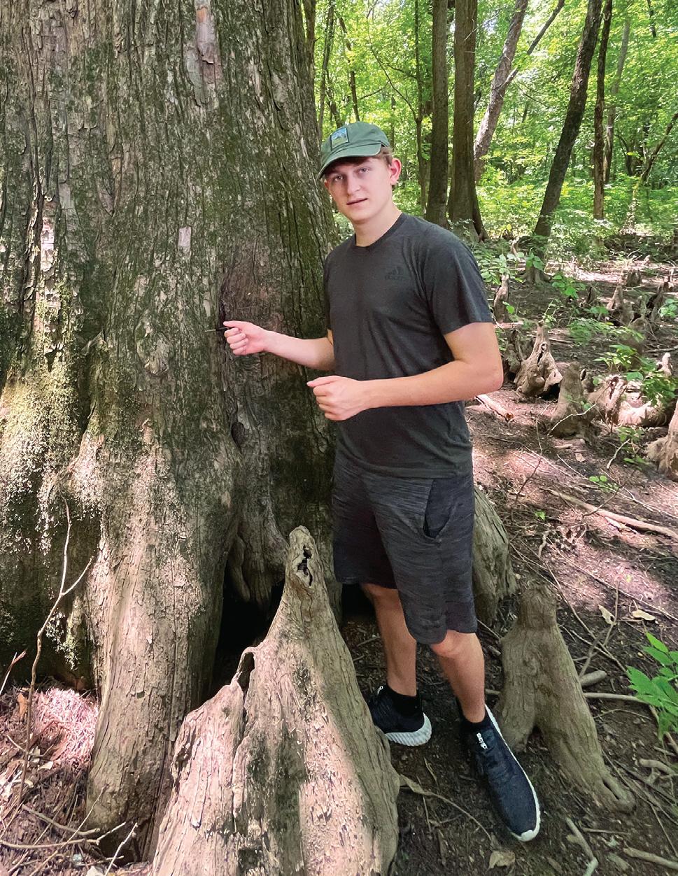 Jack, Jonathan’s tree sidekick and son, explores the woods at Metropolis Lake. The area includes an impressive amount of large bald cypress trees.