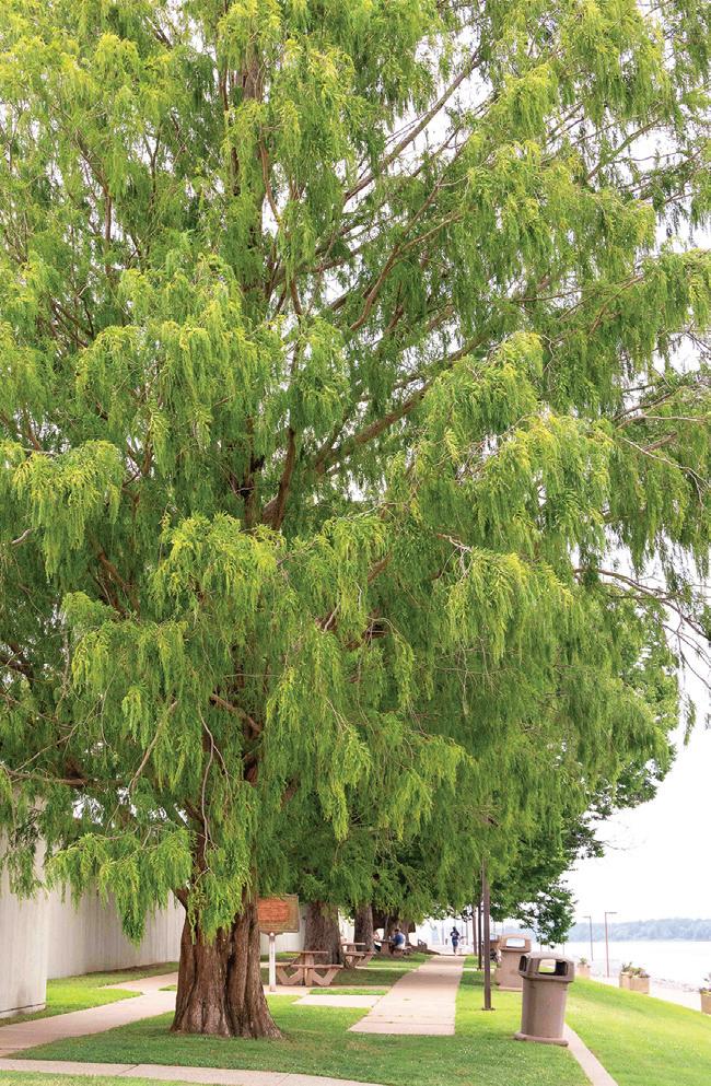 LEFT TO RIGHT: Dawn redwood, Metasequoia glyptostroboides, is a unique tree to Paducah and likely the largest of its kind in the city. It is located at the riverfront. / This post oak, Quercus stellate, is located in front of the county court house. It was named the state champion in 1973. It is 180 feet tall. / This massive cherry bark oak, at the home of Charlie and Gail Ransler, is likely one of the oldest oak trees in McCracken County.