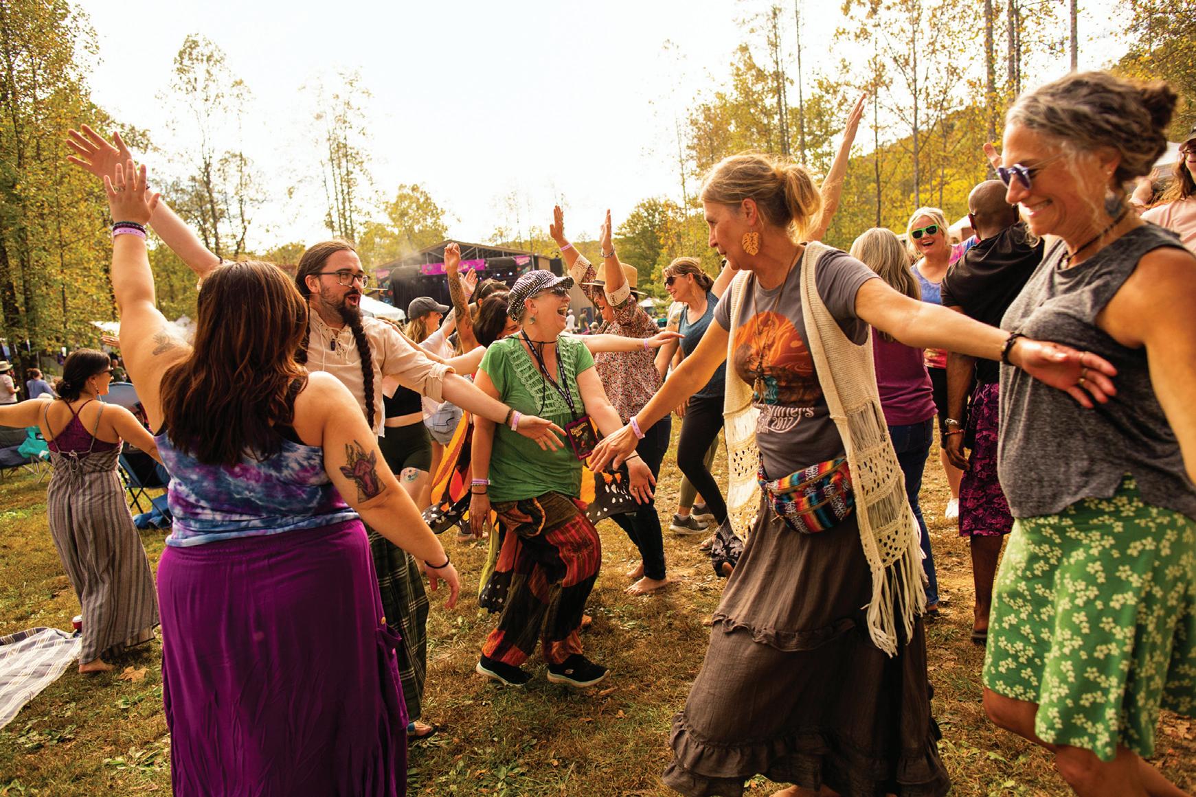 reflect, and dance their cares away. Families with children revel in the bucolic Kentucky hills, camping and playing in the river. Friends reunite and new friends are made.