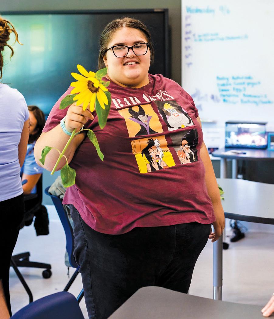 The garden has also provided sensory rewards for the students. “We have one student in particular that just really enjoys feeling the soil,” Amber shares. “He likes rubbing his hands on the sunflowers. As soon as we go outside, he rubs his hands in the dirt. It’s really cool to see how the garden provides those sensory needs for him.”