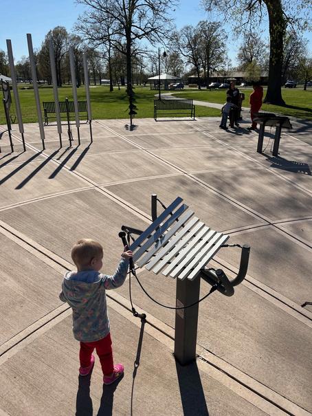 This play area with musical instruments is in Bob Noble Park on the west side of Lake Gerry B Montgomery The Music Garden is the result of a public-private partnership with fundraising by seven local garden clubs and private donors to purchase the musical instruments for kids to play.