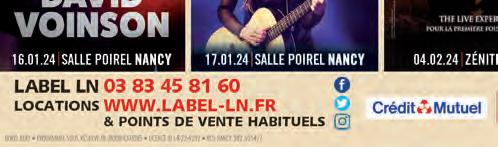 Edité par Spectacles Publications SIÈGE SOCIAL ET RÉDACTION : 22 rue François de Neufchâteau 54000 NANCY Tél. +33 (0)3 83 92 42 42 s-mags.fr info@spectaclespublications.com facebook.com/spectaclesNancy instagram.com/spectacles.nancy