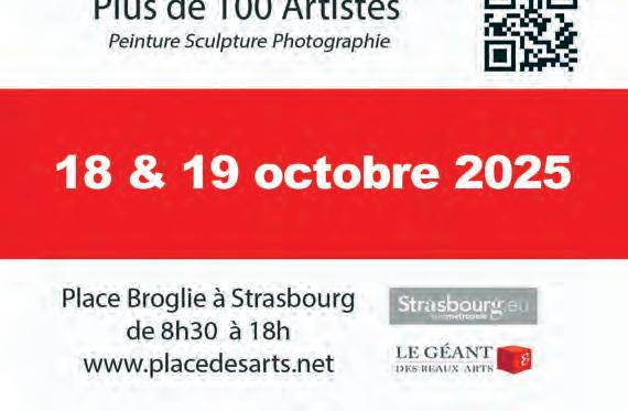 Cette année encore, l’association Place des Arts invite le public, toujours présent et fidèle, à découvrir de nombreux artistes place Broglie à Strasbourg. Une centaine d’entre eux vous y attendent pour vous faire découvrir leurs créations. L’imagination prendra le pouvoir dans tous les champs artistiques, peinture, photographie, sculpture, gravure, dessin et autres modes d’expression. Bravant les aléas de la météo, les artistes sortent de leurs ateliers pour dévoiler leurs œuvres personnelles, uniques, les plus récentes. Venez partager vos week-ends avec eux et contribuer au rayonnement de cette manifestation unique en Alsace... placedesarts.net