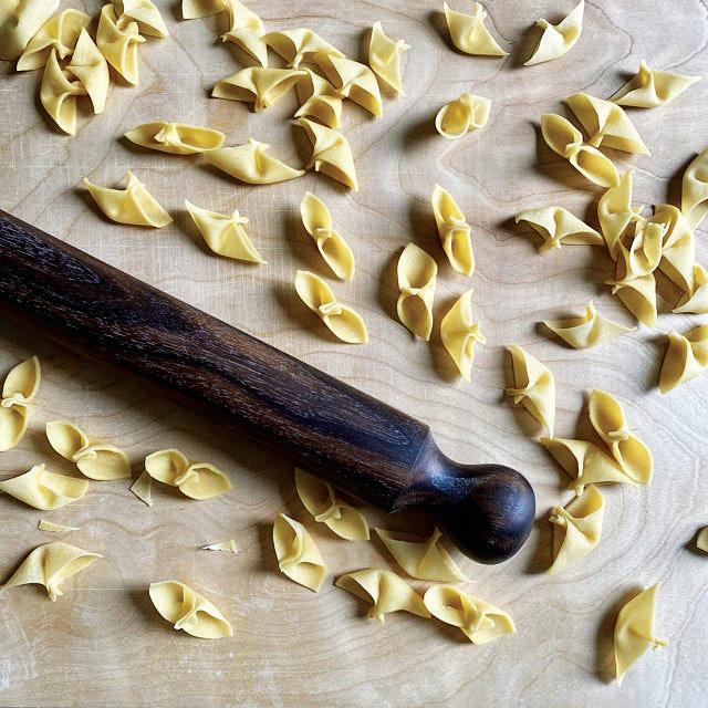Aside from the basics — pasta maker or mattarello, bench scraper, electronic scale, pastry brush, piping bags for fillings — different types of pasta require specific tools. Among the options: A gnocchi board to create those sauce-embracing grooves. A ravioli stamp or mould to help form stuffed pastas. A pasta wheel, fluted or otherwise, for cutting a myriad of shapes. Metal ferretti and wooden dowels for rolled pastas like garganelli. While you can find these in many kitchen supply stores, we especially love the locally handmade wood and brass versions from Nonna’s Wood Shop. nonnaswoodshop.com