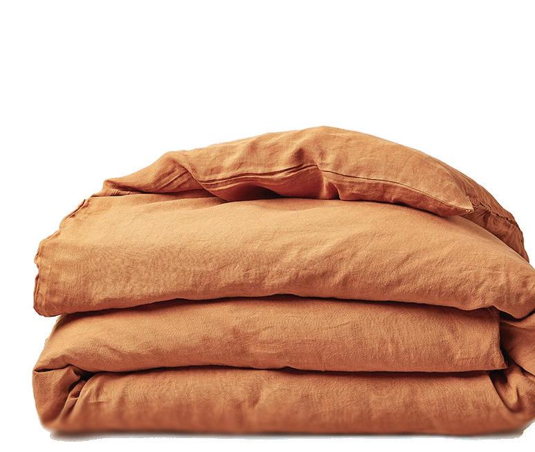 Something about new bedding just makes you feel coddled, especially when it’s this lovely, temperatureregulating, flax-and-linen duvet cover produced by Canada’s Silk & Snow in earthy but sophisticated Copper. silkandsnow.com