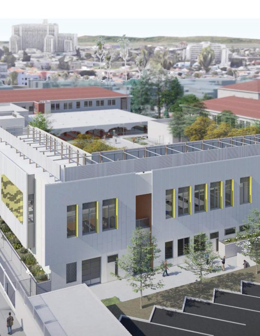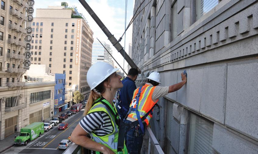 Page & Turnbull was preservation architect for the LAUSD Canoga Park project, which included the preservation and restoration of Assembly Hall, a National Register-eligible and California Registerlisted building. Our role was to ensure that the work performed on Assembly Hall, including the murals moved to the exterior of the Oral Arts Building, complied with the Secretary of the Interior’s Standards and preserved its character-defining features.