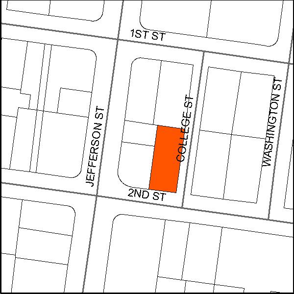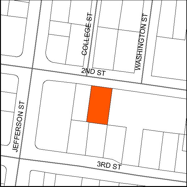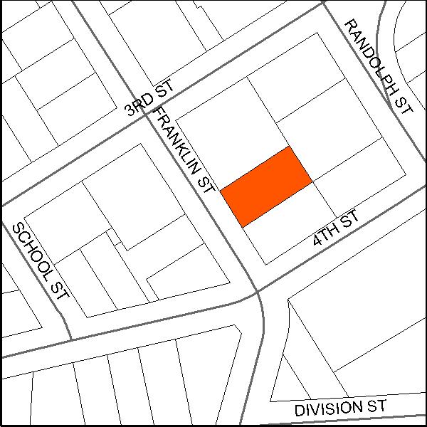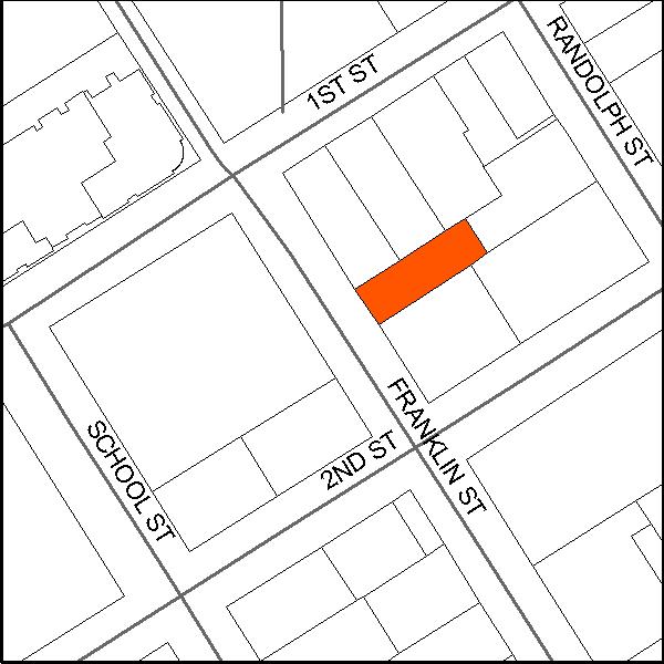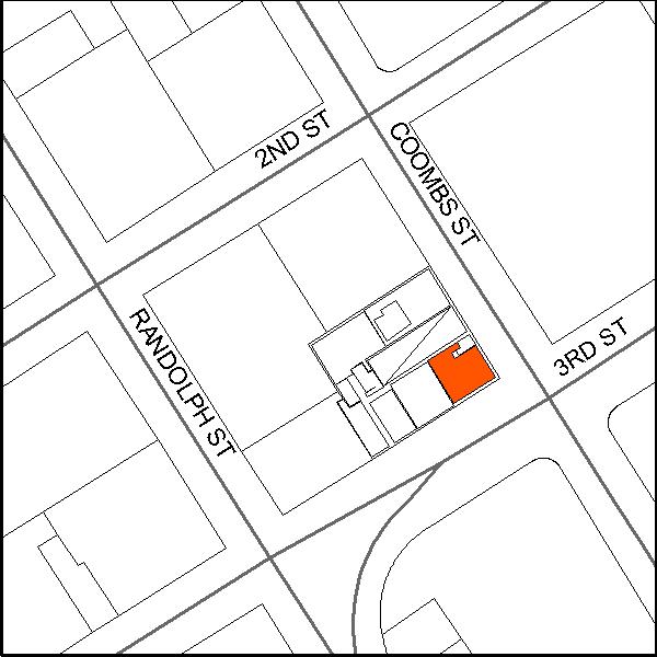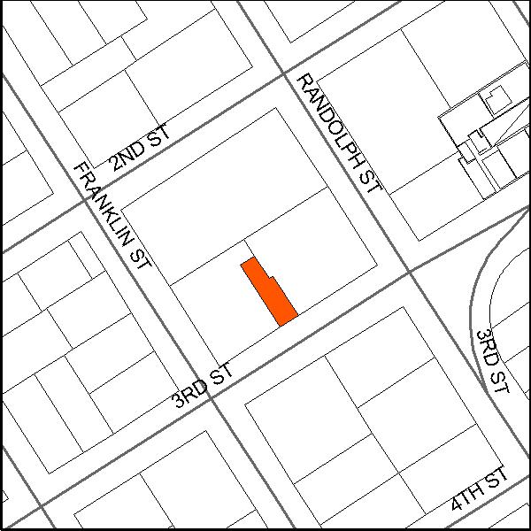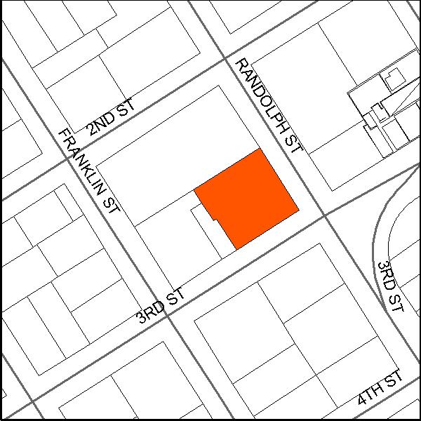 The First Presbyterian Church at the corner of Third and Randolph streets was designed in the Gothic Revival Style in 1874 by architects Daley & Eisen and constructed by builder J.W. Batchelor (Photos 1 & 2). The chapel wing was added to the rear in 1890. As noted in previous documentation, the church owns the majority of this block and has constructed several additions for church and school activities. Because the dramatic population changes and the postwar Baby Boom of the 1950s had caused an increased need for social services and education, many of Downtown’s existing historic churches added schools or social halls to their facilities to meet this need for additional space. The Presbyterian Day School on Randolph Street was constructed circa 1957 (Photo 3); the social hall at 726 Franklin streets was built circa 1970 (Photo 4); and an addition infilled the courtyard behind the school sometime in the 1970s. Since the church was previously documented, no major alterations or additions appear to have been constructed, and little change to the historic fabric has occurred. The building is still in use as a Presbyterian Church.