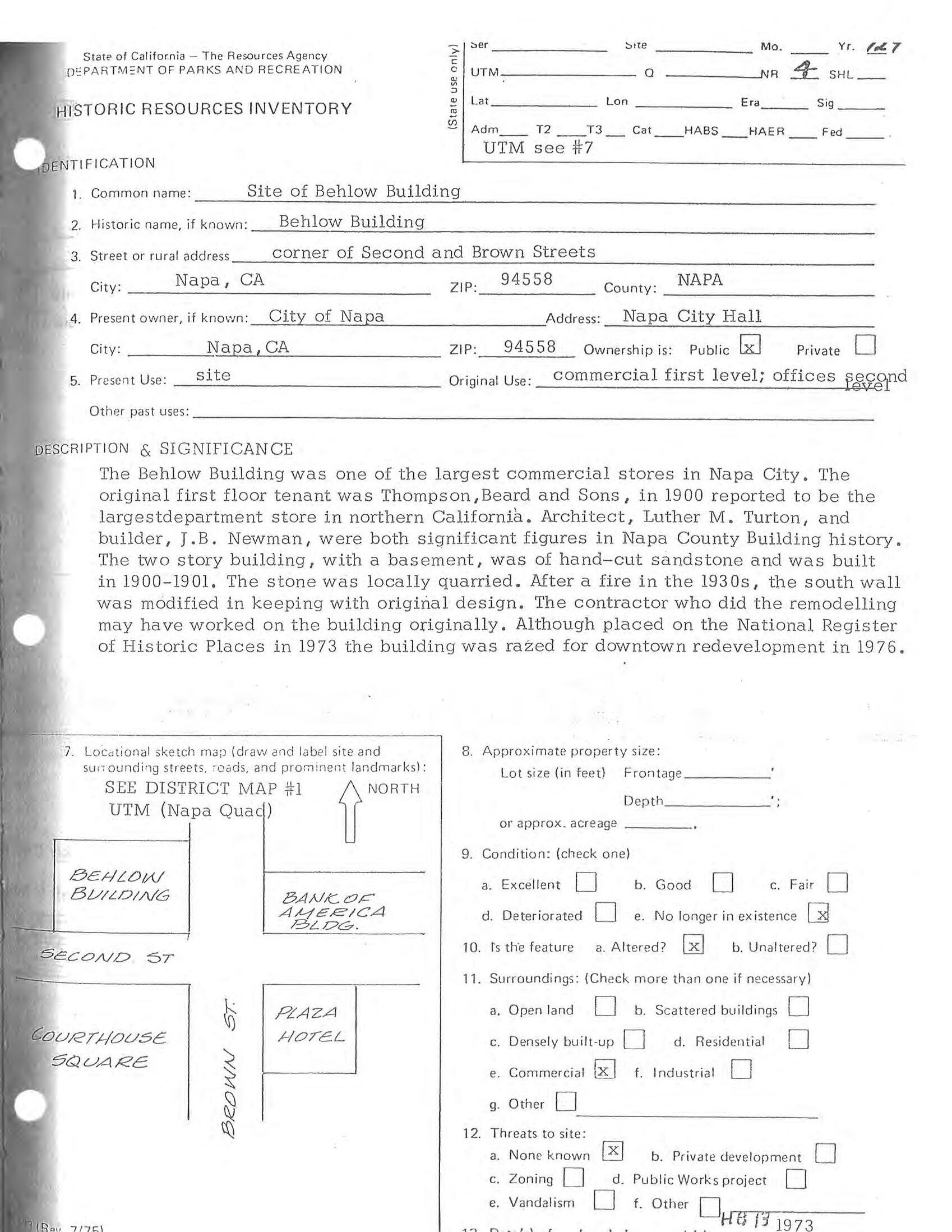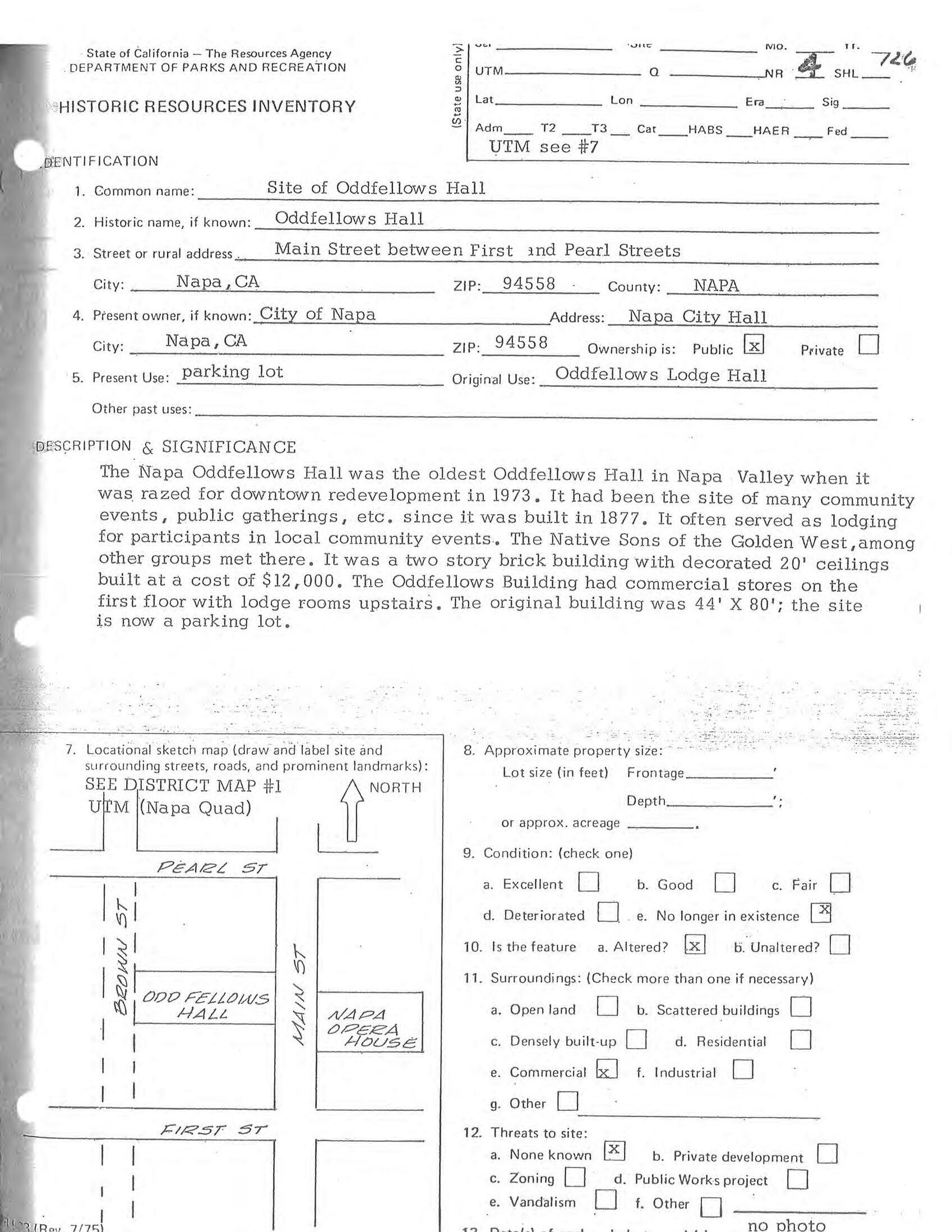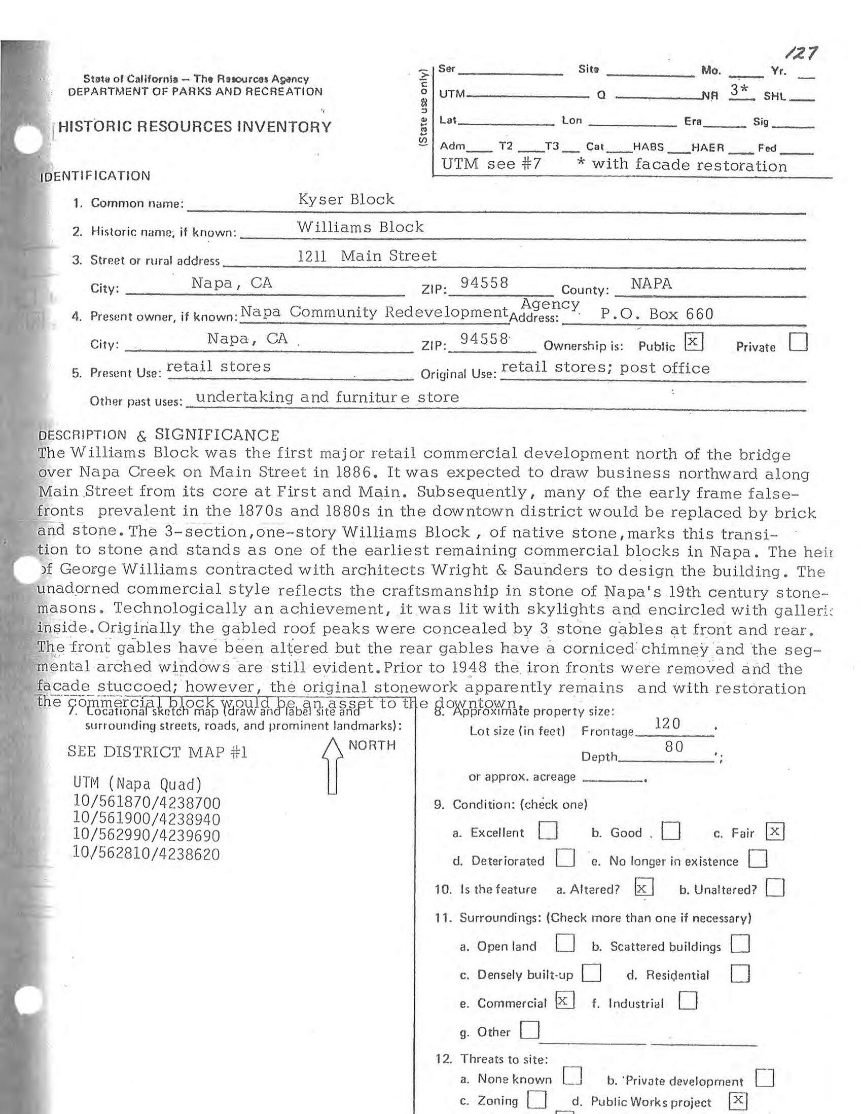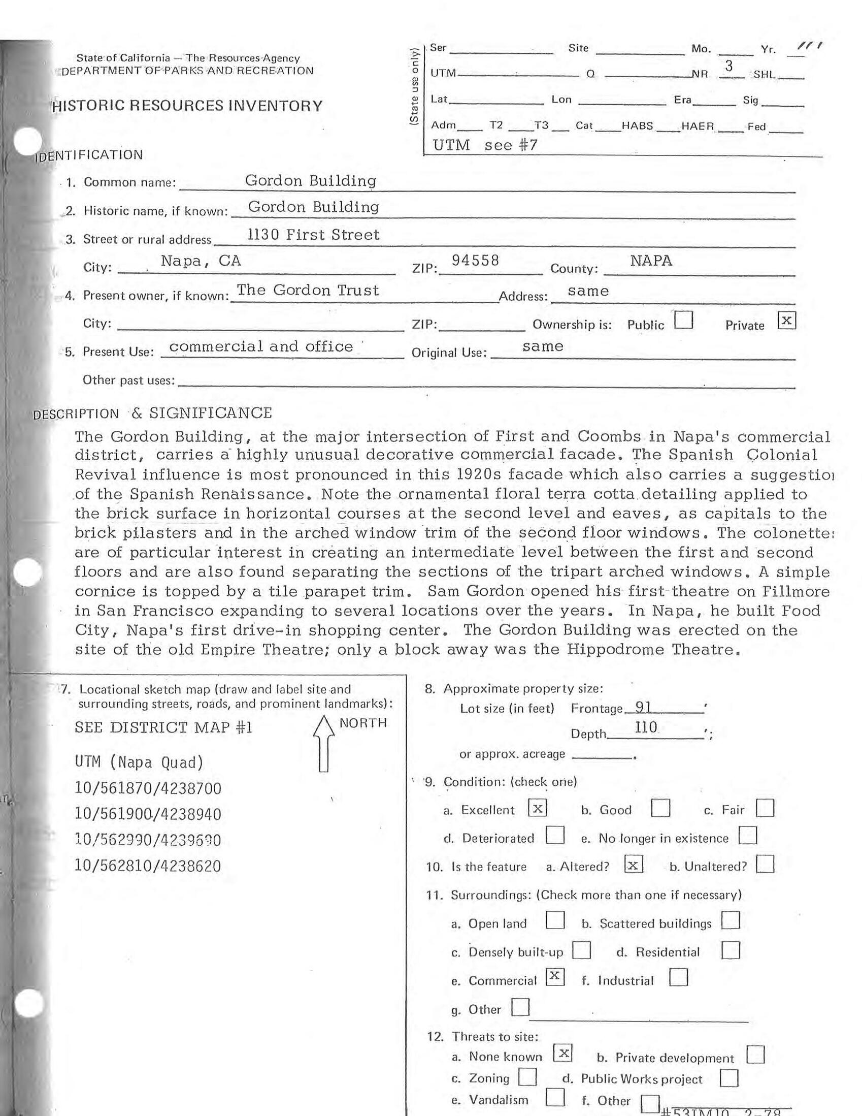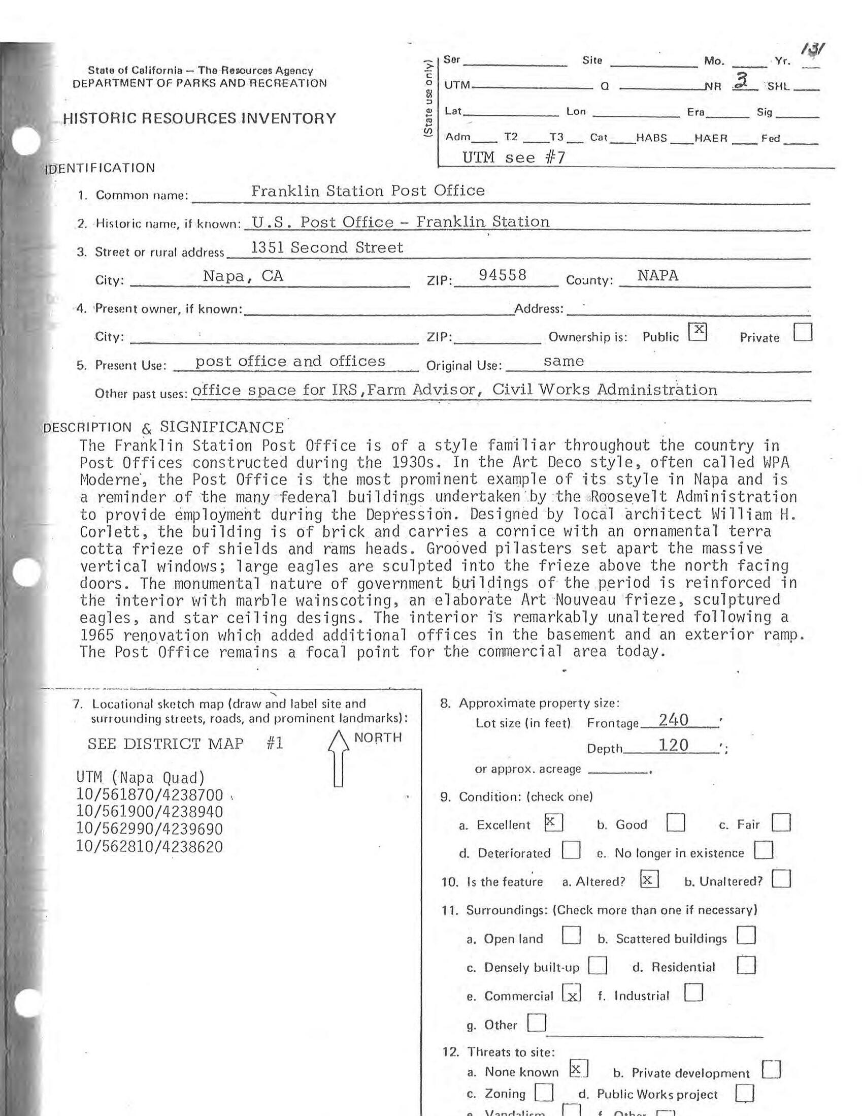 6 Napa Landmarks, Inc., “Final Report: Napa County Historic Resources Inventory” (Napa: unpublished report, 1 December 1978), in City of Napa Planning Department Archives, 1-11.