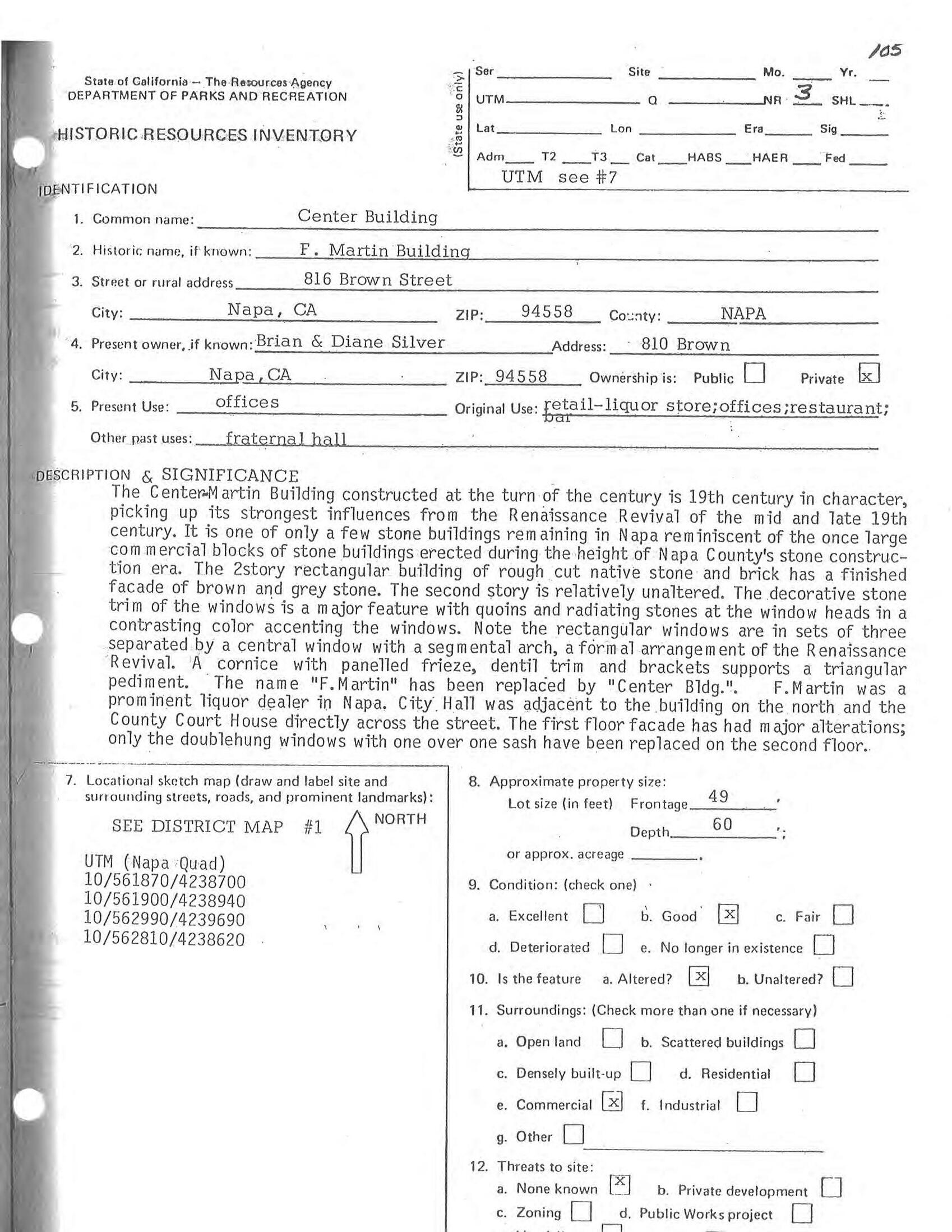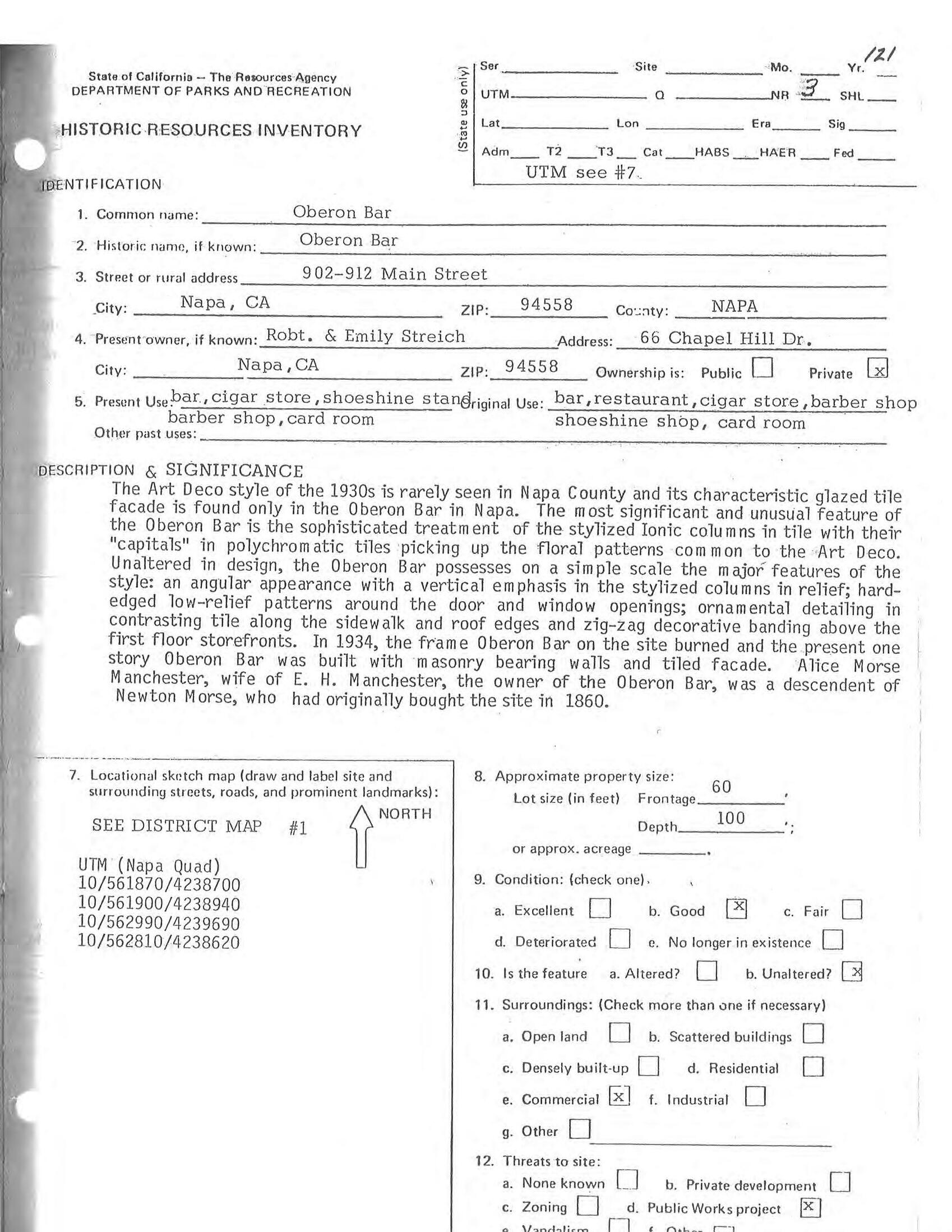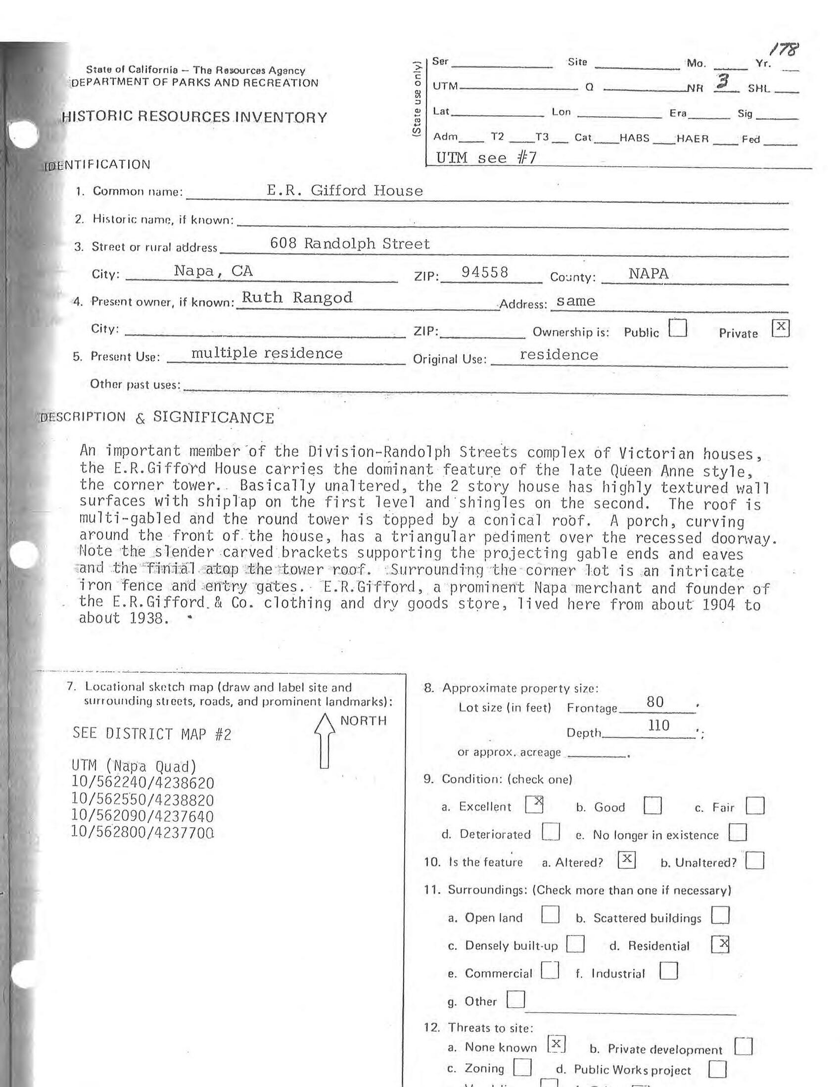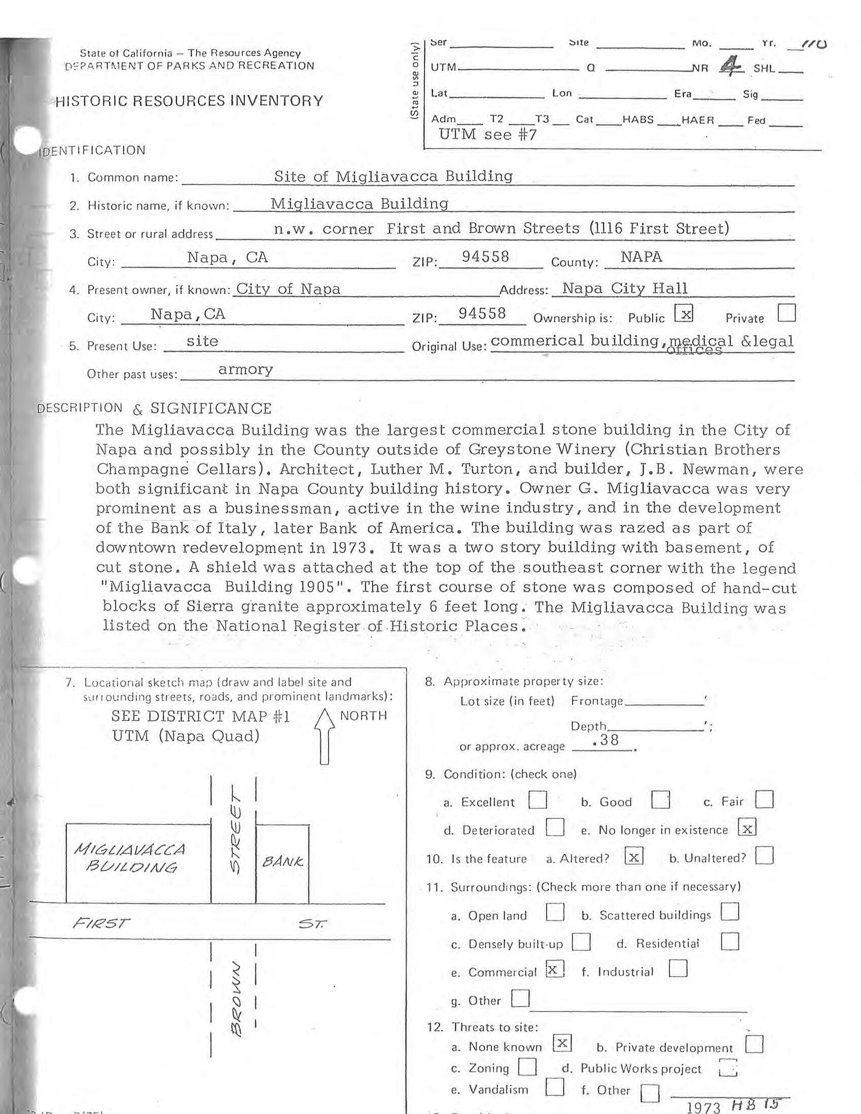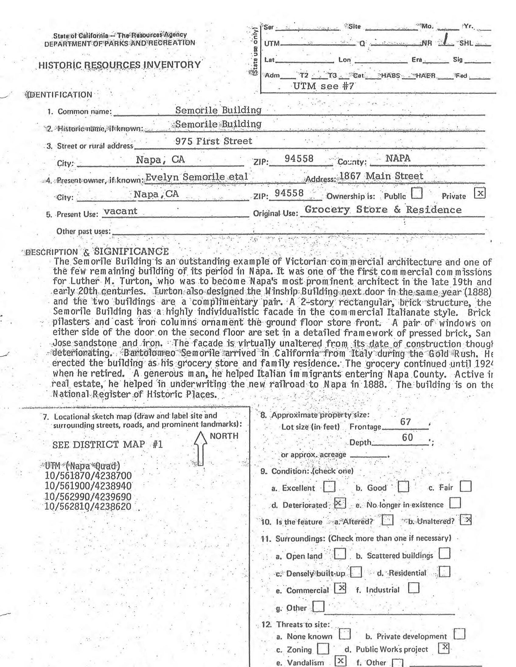 6 Napa Landmarks, Inc., “Final Report: Napa County Historic Resources Inventory” (Napa: unpublished report, 1 December 1978), in City of Napa Planning Department Archives, 1-11.