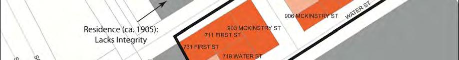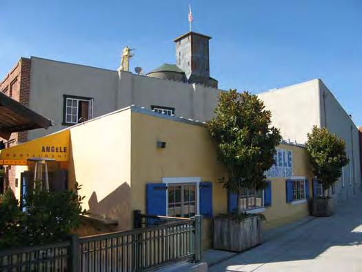 Hatt Building (1893) – Original warehouse and wharf, now Angele restaurant. Although it was not explicitly mentioned in the National Register nomination, this building is associated with Captain Hatt and thus appears to have the associations necessary to contribute to the complex’s significance. However, it has been significantly altered since its original construction (new stucco cladding, north wall reconfigured in 1930s, doors replaced, wharf removed) and thus does not retain sufficient integrity to be considered a contributor to the complex. (6Z: Ineligible for NR, CR or local designation through survey evaluation)