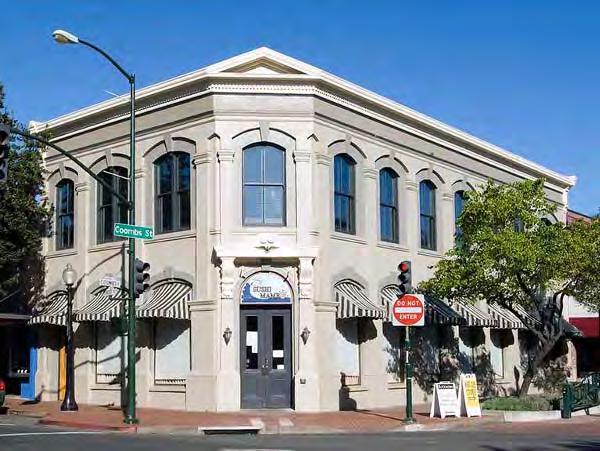 1025 Coombs Street (ca. 1930) – Narrow building adjacent to Merrill’s Building at 1025 Coombs Street. Formerly APN 003164003000. While this building was designed to match the Coombs Street façade of the Merrill’s Building, it lacks architectural distinction and historical integrity, and does not appear to contribute to the significance of the Merrill’s Building. (6Z: Ineligible for NR, CR or local designation through survey evaluation)