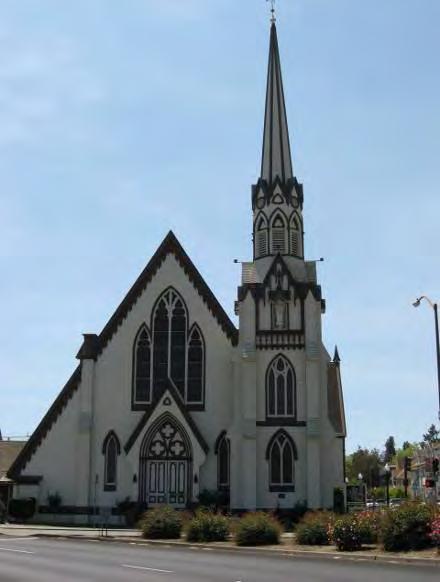 First United Methodist Church (1916) – Original church, designed in the English Gothic Revival style by Luther Turton. City of Napa Landmark Property (5S1: Individual property that is listed or designated locally). Appears eligible for listing in NR (3S: Appears eligible for NR as an individual property through survey evaluation).