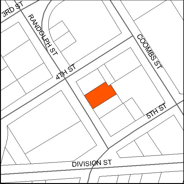 The First United Methodist Church at the corner of Randolph and Division streets was designed in the English Gothic Style in 1916 by prominent local architect Luther Turton and constructed by builder William Coffield (Photo 1). As noted in previous documentation, the church owns the entire block and has constructed several additional buildings for church and school activities. These additions were constructed in the 1950s because the dramatic population changes and the postwar Baby Boom had caused an increased need for social services and education, and many of Downtown’s existing historic churches added schools or social halls to their facilities to meet this need for additional space. Centennial Hall/Adams Hall at 1301 Fourth Street was constructed in 1952 as a social hall (Photo 2), while the Bonner Educational Building was built in 1955 to house the church’s school (Photo 3). Since the church was previously documented, no major alterations or additions have been constructed, and little change to the historic fabric has occurred. The building is still in use as a Methodist Church.