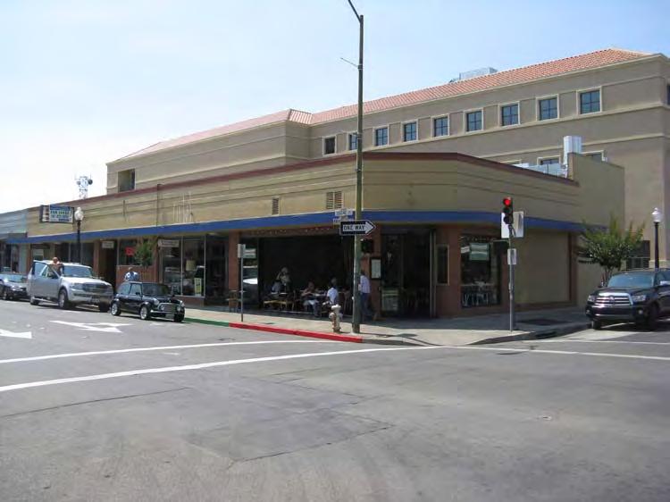Merrill’s Building (1929) – Original two-story commercial building, designed by architect C.L. Hunt in the Renaissance Revival and Spanish Eclectic styles. Formerly APN 003164013000. Eligible for listing in NR (3S: Appears eligible for NR as an individual property through survey evaluation)