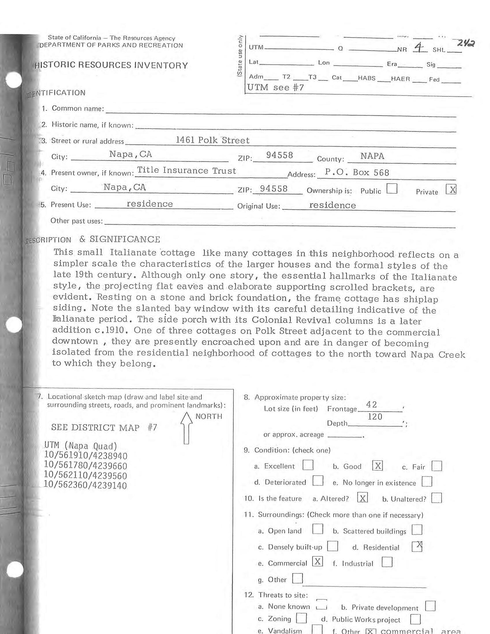 7 San Buenaventura Research Associates, “Napa City-Wide Historic Resources Survey: Methodology and Results Report” (Napa: unpublished report, March 1995), in City of Napa Planning Department Archives, 1-3.