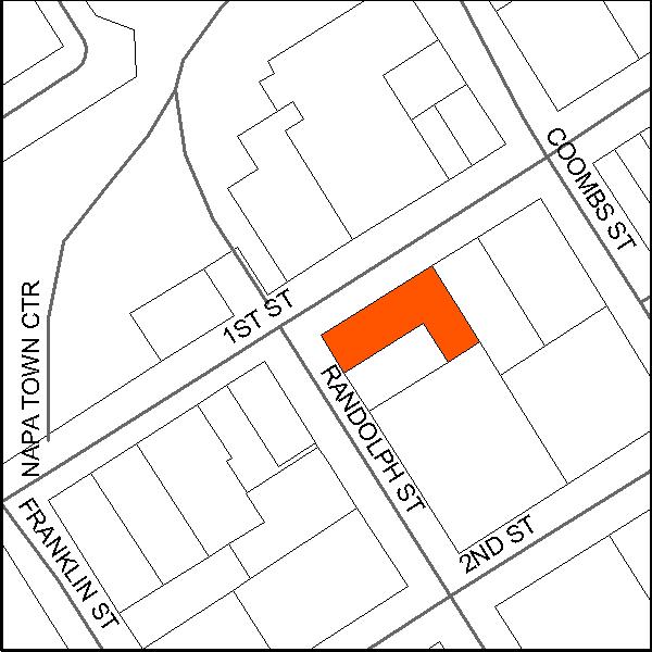 The Downtown Napa survey area is located on the west bank of the Napa River in the east central portion of the City of Napa. The irregularly-shaped survey area, which corresponds to the Downtown Specific Plan Planning Area, is roughly bounded by the Napa River on the east, Caymus Street on the north, Jefferson Street on the west and Third and Division streets on the south. The Napa Creek runs diagonally through the survey area from approximately the intersection of Clinton and Coombs streets to the juncture of the creek and river near Second and Main streets. Soscol Avenue, located at the eastern edge of the survey area, is a major local thoroughfare. Bridges at First and Third streets and Soscol Avenue provide access across the Napa River to downtown.