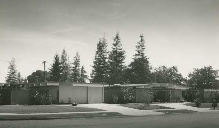 Soon after its founding, the partnership of Jones and Emmons was hired by Jo seph Eichler to develop new house designs to supplement the work of Anshen and Allen. From that point until 1960, when Anshen and Allen moved on to larger scale civic and commercial work, the work of both firms was central to new Eichler subdivisions in Palo Alto and throughout California. While Eichler homes were characterized by wood post-and-beam construction, Jones and Emmons also gained attention for their use of steel frames and they developed a steel-frame model home—known as the X-100—for Eichler Homes that was constructed in San Mateo. Their work also included the Laguna Eichler Apartments, constructed in the mid-1960s as a redevelopment project in San Francisco’s Western Addition. Jones and Emmons’s careers, however, remain defined by thousands of suburban residences that were built by Eichler Homes according to their designs. The part nership ended in 1969 when Emmons retired.