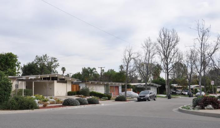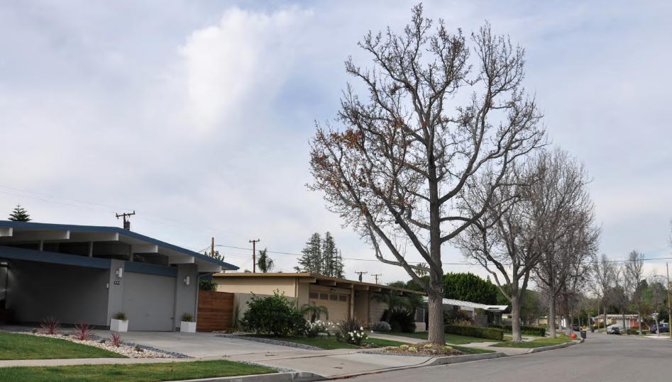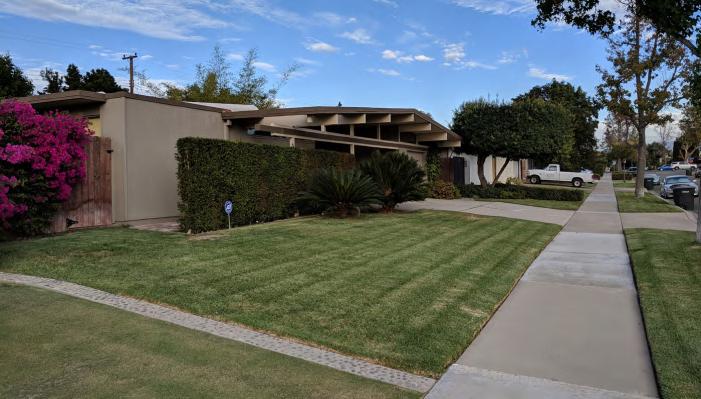 Three of the five tract developments built by Eichler Homes, Inc. in Southern California are in the City of Orange. The three tracts— Fairhaven (1960), Fairmeadow (1962), and Fairhills (1964)—are among the most intact and well-preserved examples of these postwar, Mid-Century Modern neighborhoods in the state. Residents of the three tracts have long recognized how special these communities are, and have led the efforts to protect their unique character. In response, the City of Orange moved to establish historic district overlay zoning for each neighborhood that offers protection through a design review process.