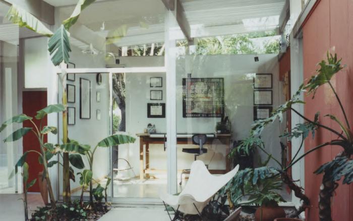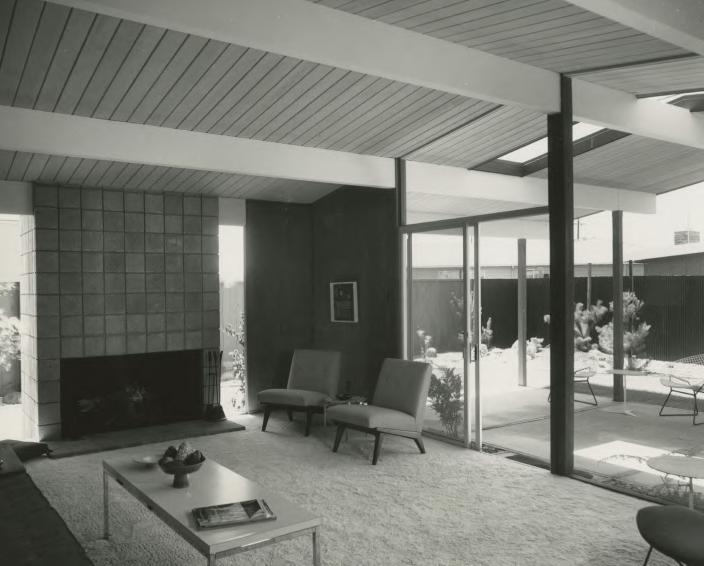 Founded in 1950 and based in Los Angeles, the innovative partnership of A. Quincy Jones and Frederick Emmons explored new uses of materials and interior layout in the postwar period. Jones, who gained experience in several architectur al offices before joining Emmons, is recognized as the primary driver of the firm’s innovative design work. One of Jones’s major accomplishments prior to forming his firm with Emmons was his design role in the Mutual Housing Association de velopment in Brentwood, which consisted of 160 Mid-Century Modern homes constructed of concrete block and wood, with expansive walls of glass.
