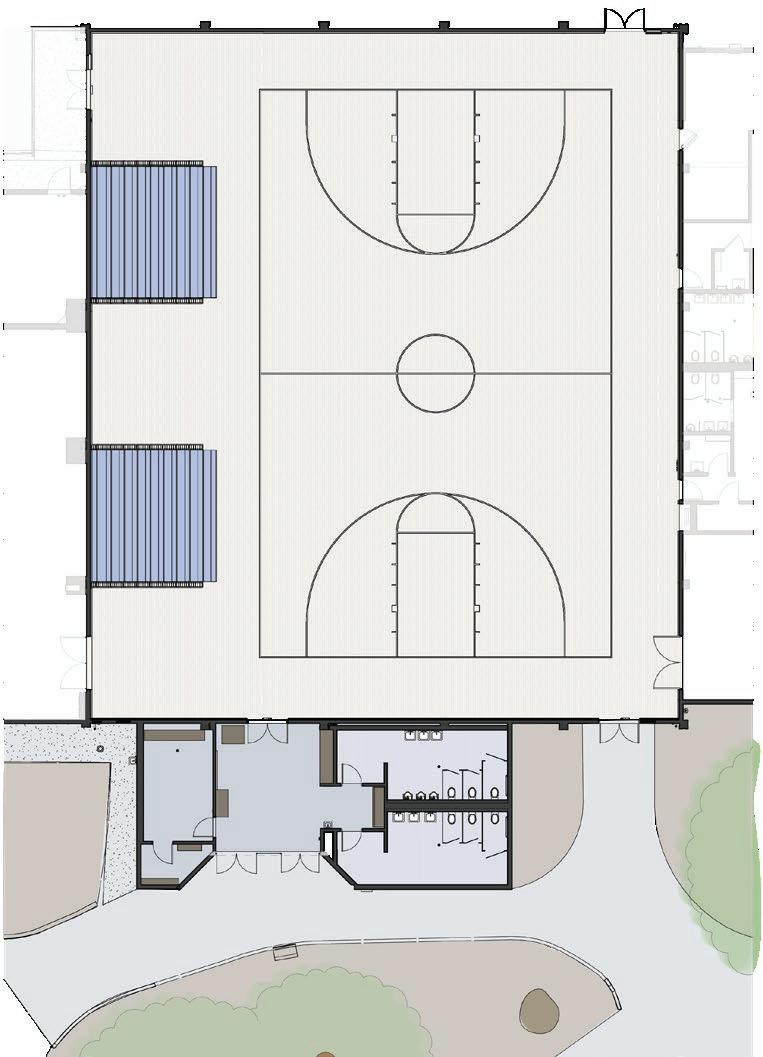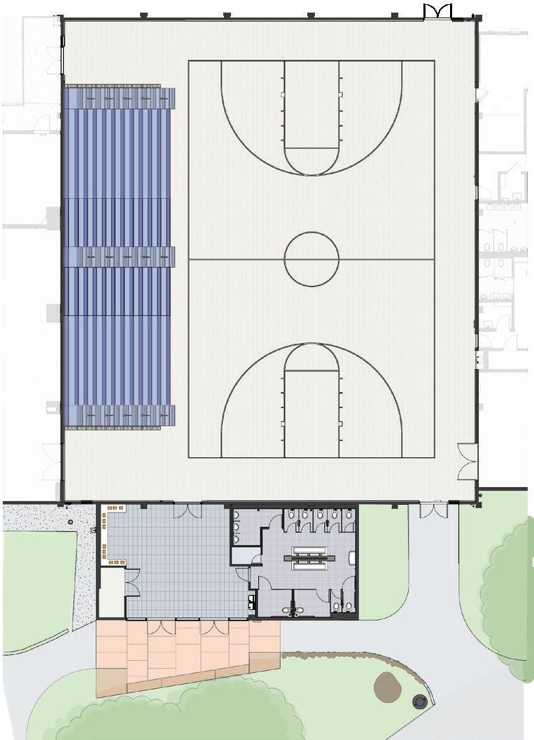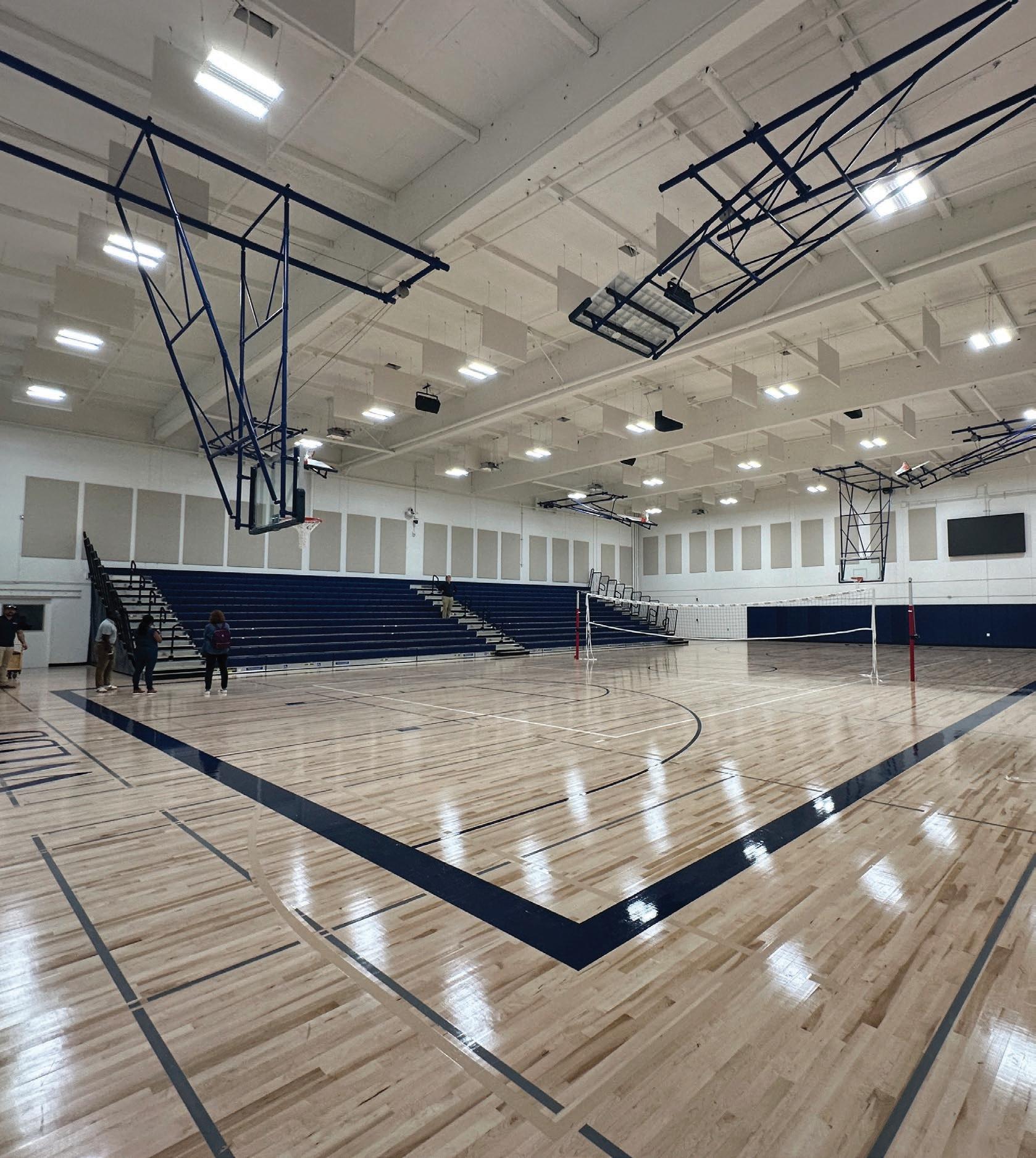 LES PERRY GYMNASIUM, 2025: Webb improved the 9,000 sq ft Les Perry Gym, which still had its original floor, lobby, and bleachers, to enhance the user experience and to improve their competitive edge. The projectâcompleted for $3M and within a three-month scheduleâincludes a new floor and sprinkler system, planar LED screens and lighting, additional bleacher seating, and an updated entry with an outdoor plaza and trophy display area.