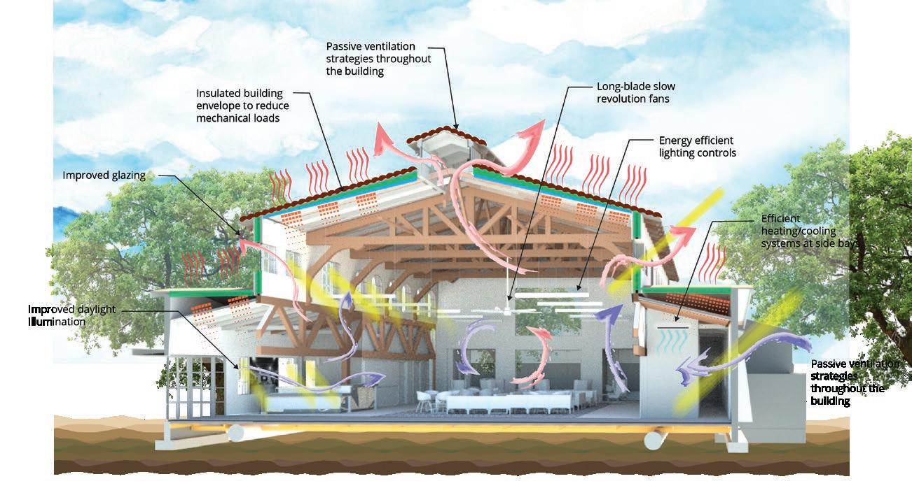 TAYLOR B. STOCKDALE COMMUNITY CENTER, 2021: Passive ventilation, improved insulation and windows, controlled lighting, and efficient heating/cooling systems were part of an effective sustainability program.