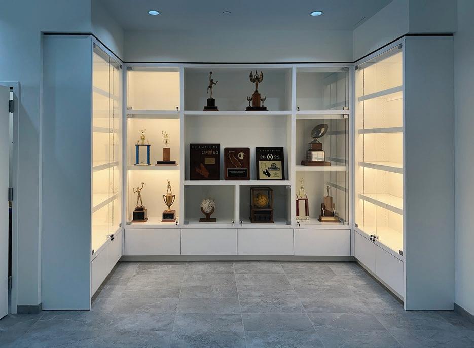 Improvements to the trophy display area created a âdestinationâ rather than an ad hoc collection of awards. The new display system includes adjustable shelves with Phantom Ultra AC Series LED lighting integrated for flexible display options. Wiring and display space was provided for the future installation of a touch screen digital trophy and hall of fame monitor by Rocket Alumni Solutions.