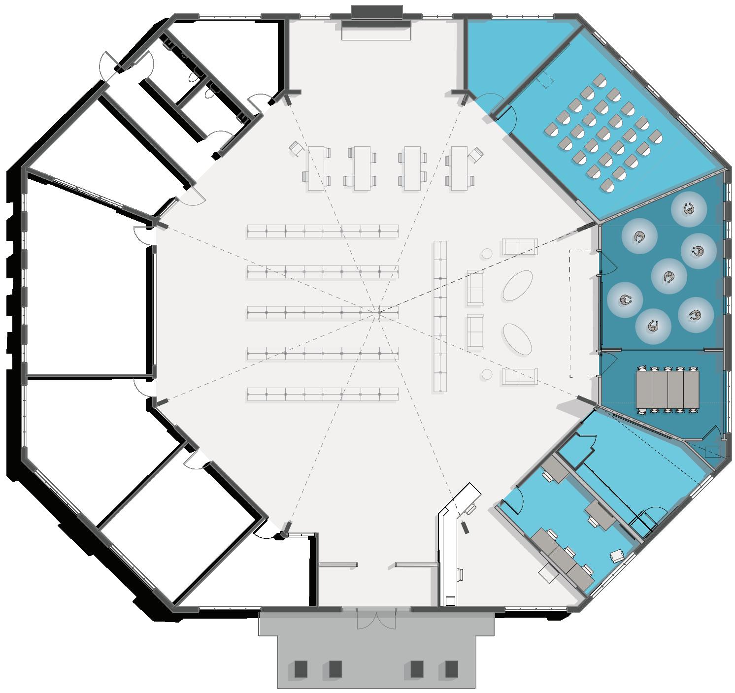 In addition to day-to-day activities, the space is flexible; able to accommodate a range of programming from school assemblies, to seating for movies and gaming nights, or small performances.
