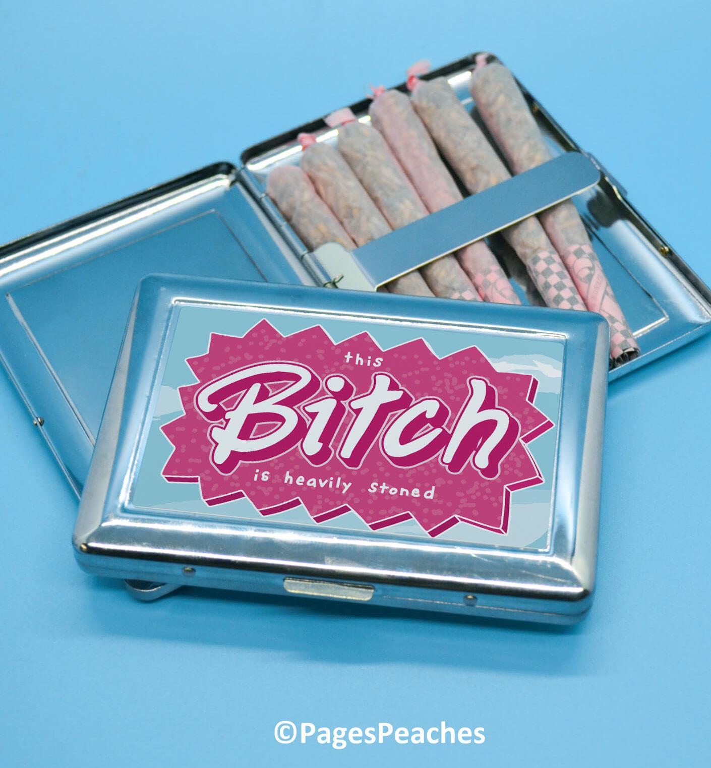 We’ve all got $hit to carry, so carry it in style! The Page’s Peaches compact cases are incrediable versitile for whatever you need to lug around. Designed for cigarettes, you can carry 8 smokes or 6 joints around with you safe and secure. You can put so much more in it than cigarettes and joints though! Stash your business cards, drag queen tips for the club, lactaid packets, wet wipes, etc. Whatever you’ve got, keep it secure with these awesome compact cases.