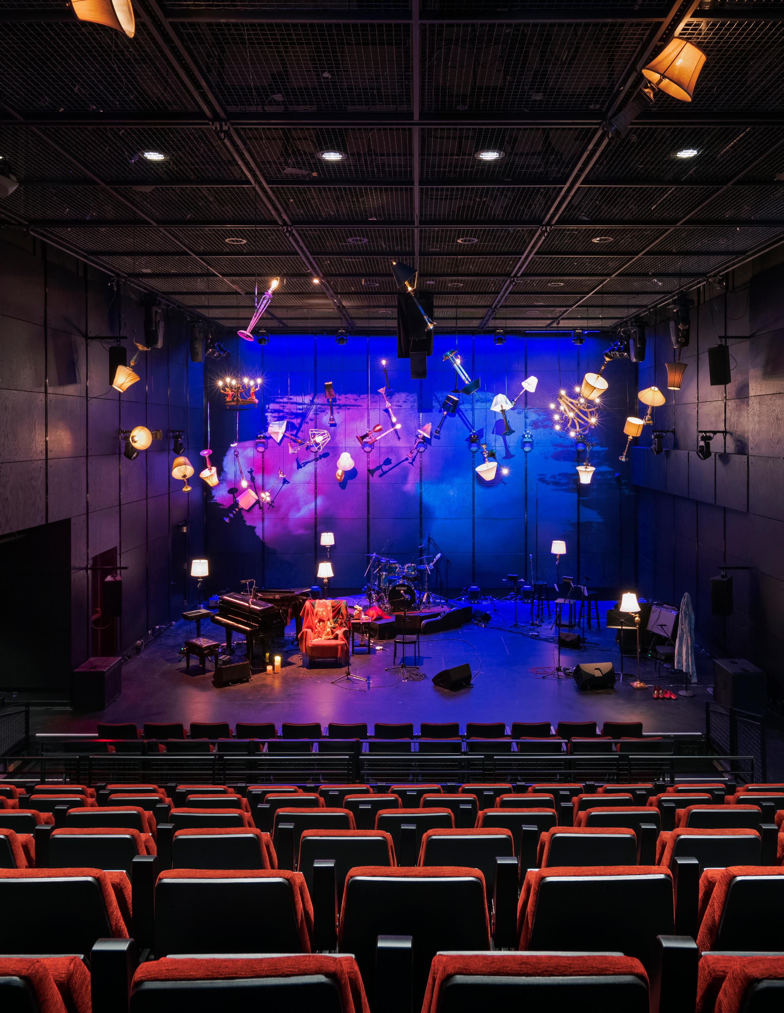 Hidden inside is a technically sophisticated and highly transformable venue, equipped with dozens of reconfigurable seating and stage arrangements capable of hosting audiences from 99 to 1,200 people.