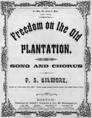 „Freedom On Te Old Plantation“, 1861 zu Beginn des amerikanischen Bürgerkrieges geschrieben, trägt einen feierlichen Charakter.