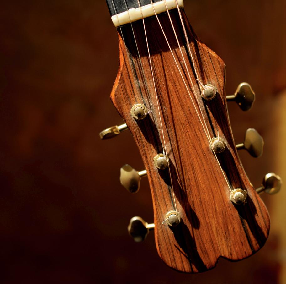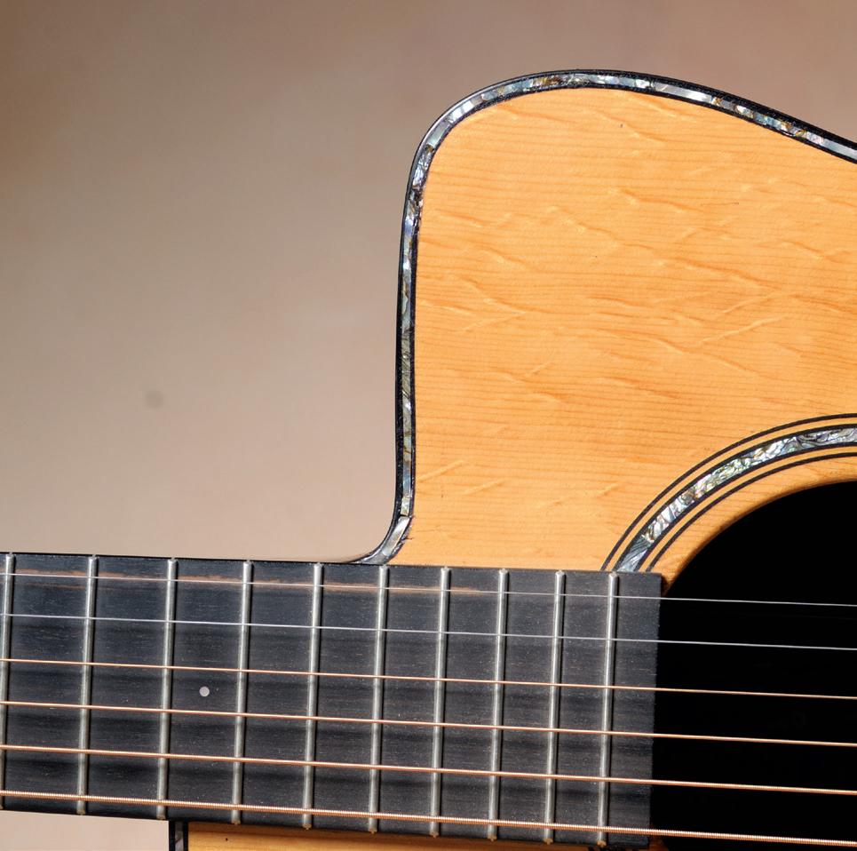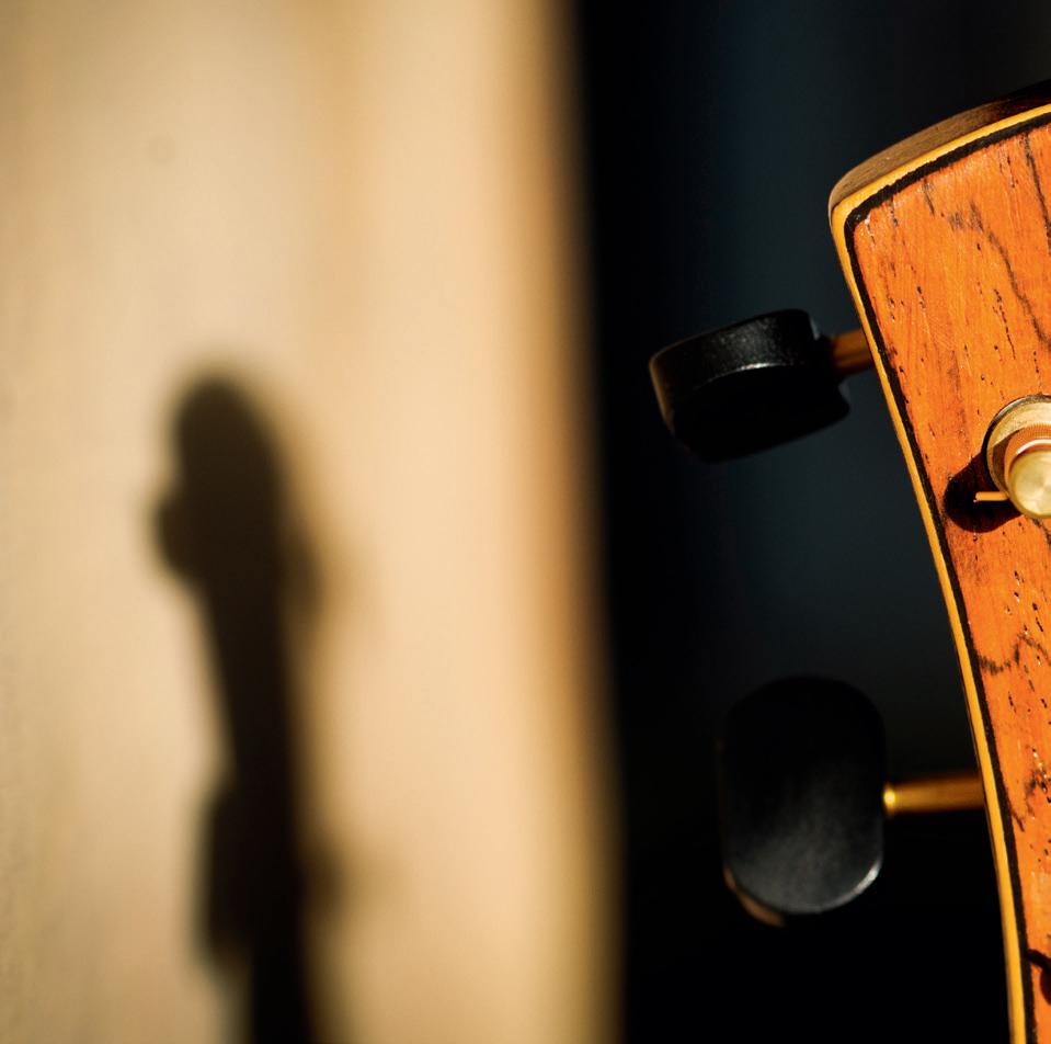großen Einfluss auf mich. Ich habe viel von seinem wunderbaren Riopalisander in meiner Werkstatt, ebenso einige Werkzeuge und Bauformen. Nach längerer Pause baue ich seit ca. zehn Jahren mehr denn je, und jede Gitarre wird besser. Inzwischen bin ich bei Nr. 28 angekommen und spiele grundsätzlich nur noch auf meinen eigenen Instrumenten, da mir die Beziehung zum Instrument wichtig ist. Bei rund 120 Stunden Bauzeit, wenn Schweiß tropft und Blut fließt, ergibt sich automatisch eine gewisse Beziehung. Es liegen nun sogar Aufträge vor. Jedoch bin ich noch nicht sicher, ob ich diesen Weg gehen möchte. Denn eigentlich möchte ich für mich allein das ideale Instrument finden. Ich hoffe nur, dass ich es nicht zu schnell finde ...