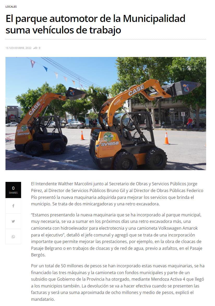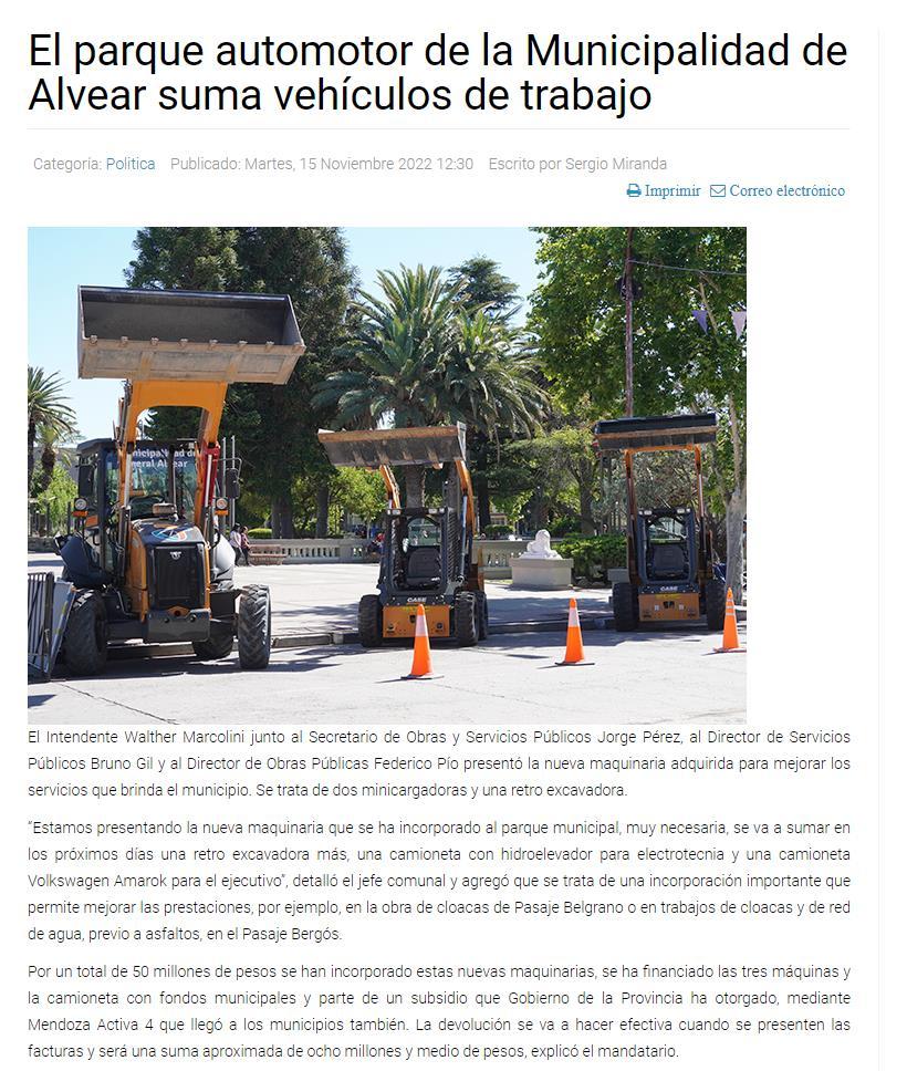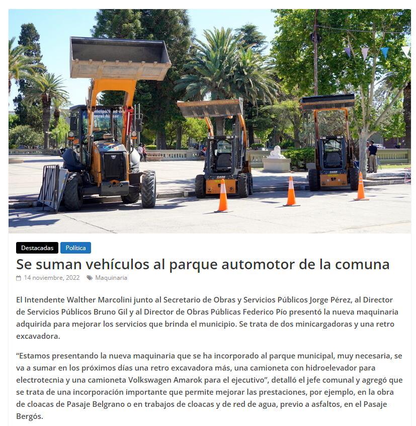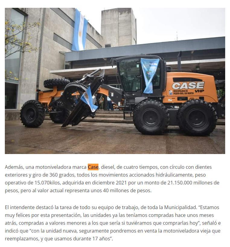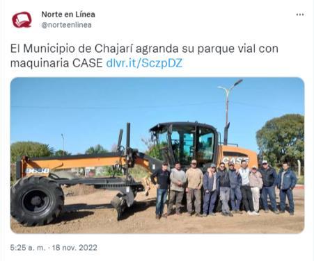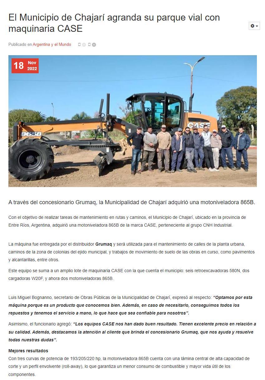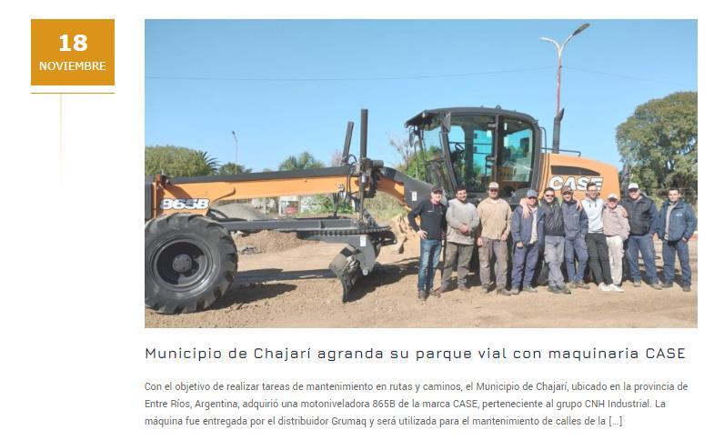 El Municipio de Chajarí agranda su parque vial con maquinaria CASE