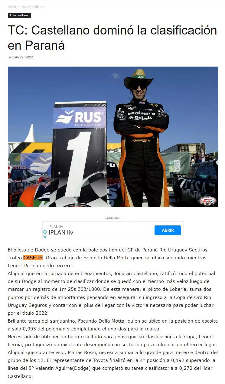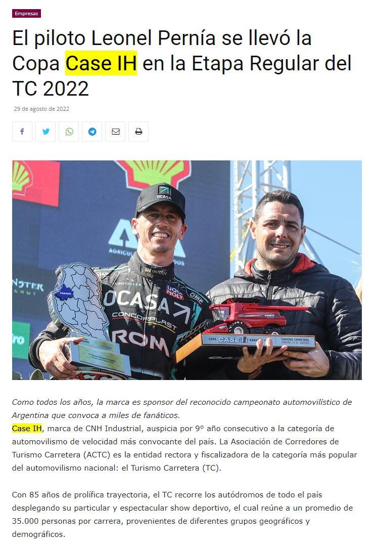 El piloto Leonel Pernía se llevó la Copa Case IH en la Etapa Regular del TC 2022